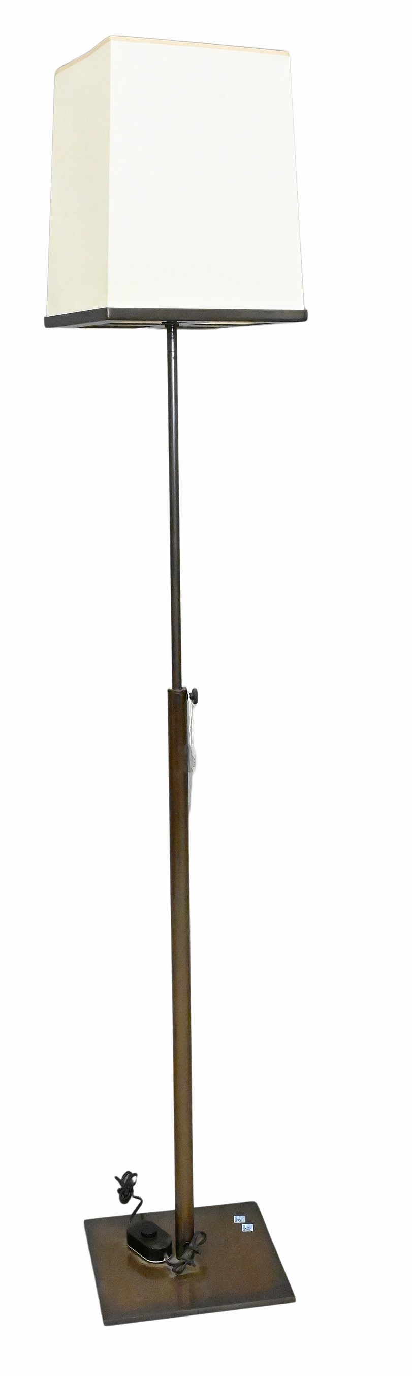 in chrome, having center stem and base plate, with paper rectangular lampshade, retails for over ($2000)