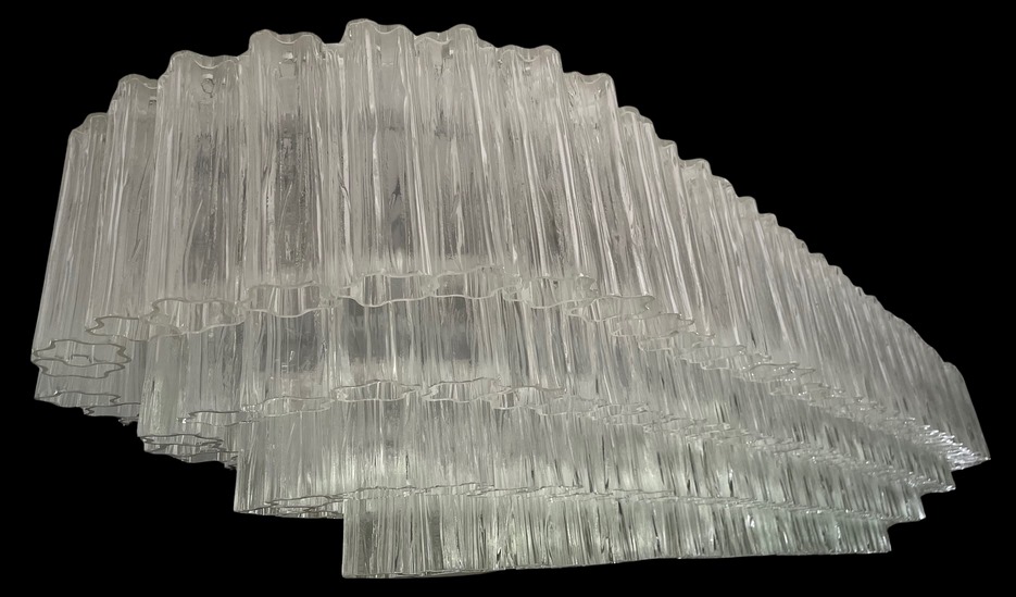to include Karl Springer style cylindrical stacked lamp, stacked clear and garnet colored pyramid base lamp, snail shaped curved lamp