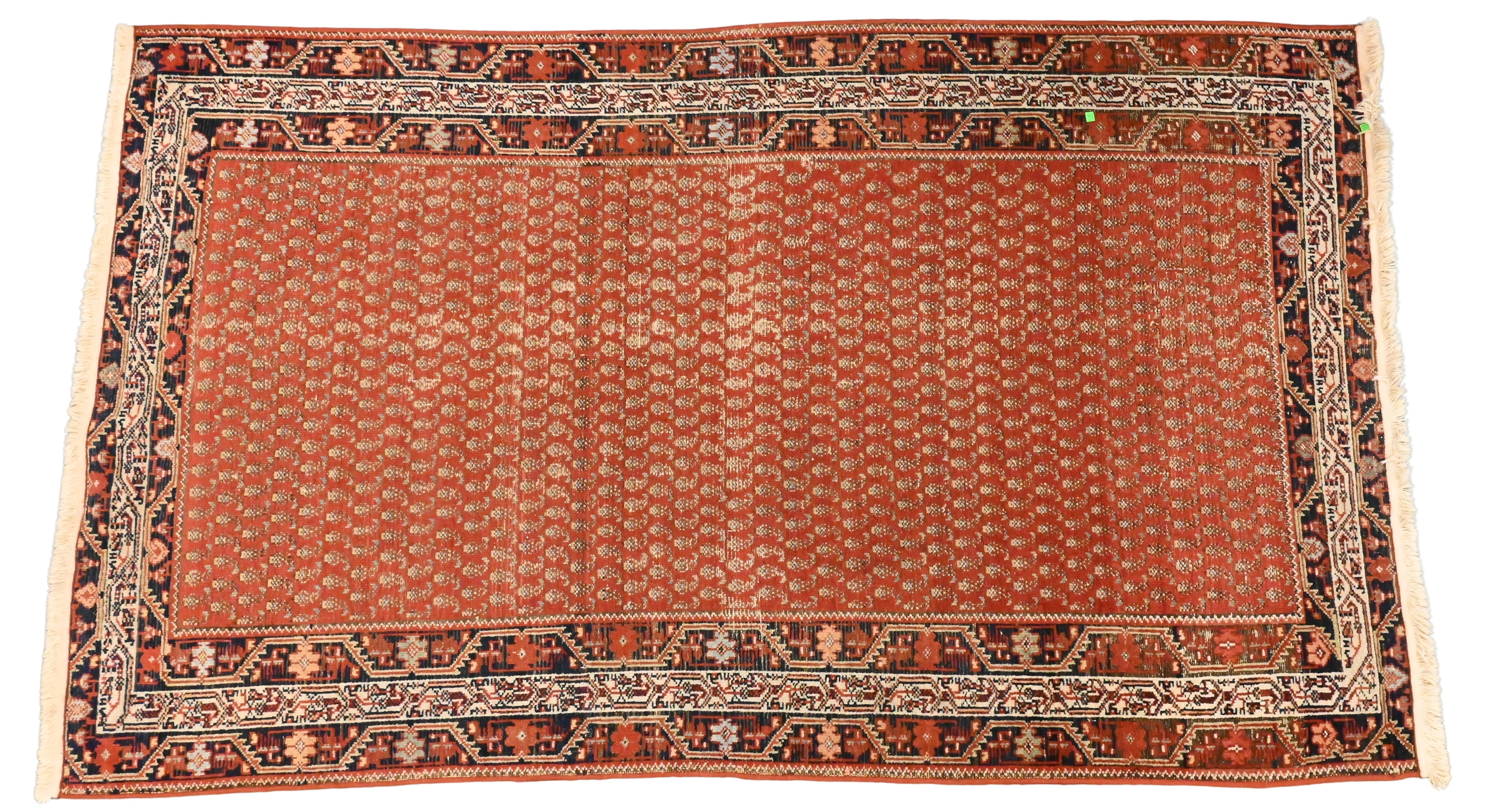 pale red colored ground decorated an allover repeating “boteh” in row design in multiple borders, early 20th century