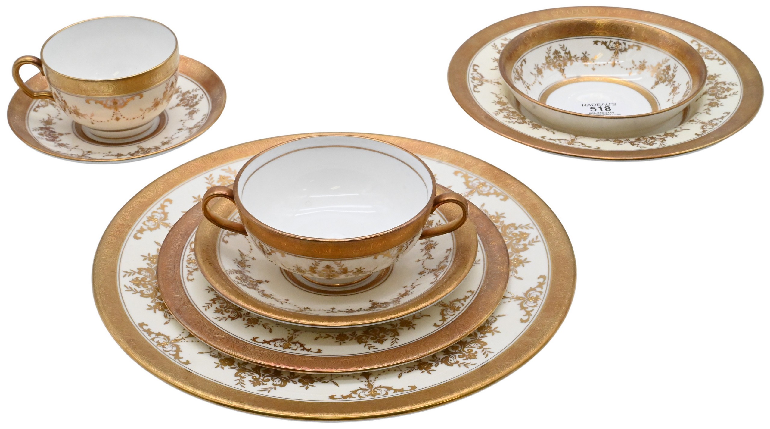 to include 15 dinner plates (diameter 10 inches) 20 salad plates, 17 bread plates, 20 saucers, 26 tea cups, 15 serving pieces, two bowls