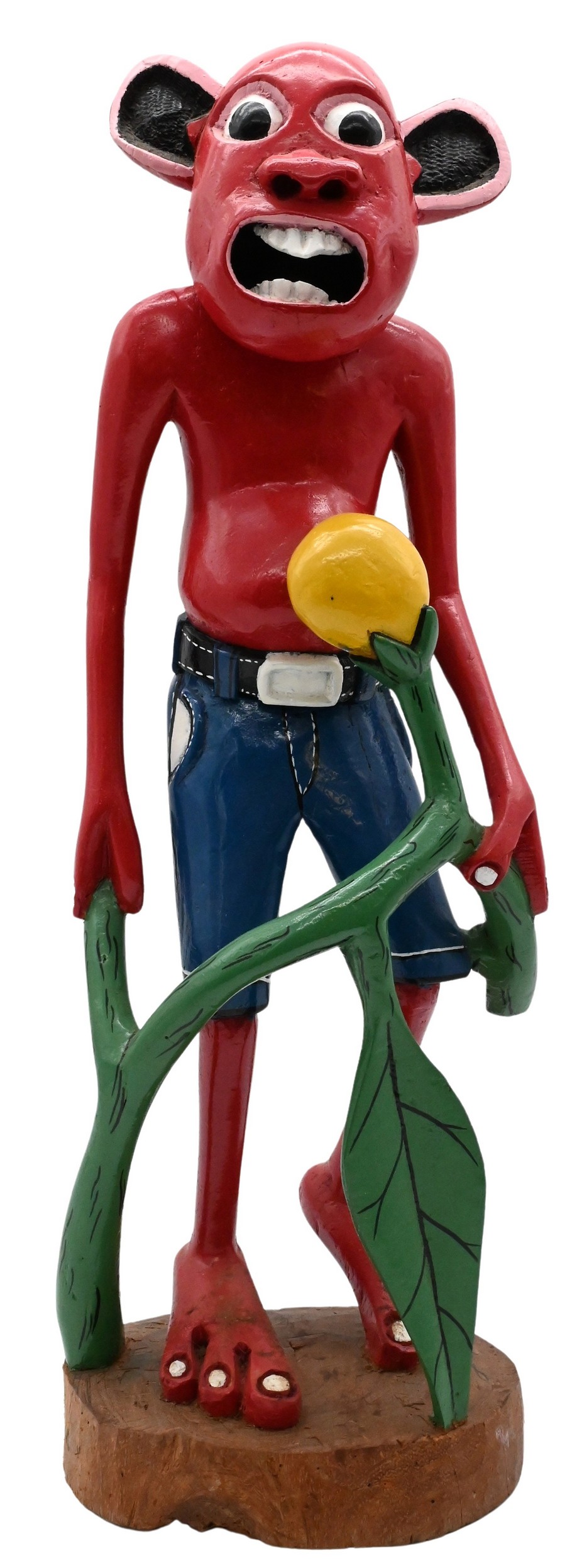 Red Figure in Jean Shorts Hold a Plant