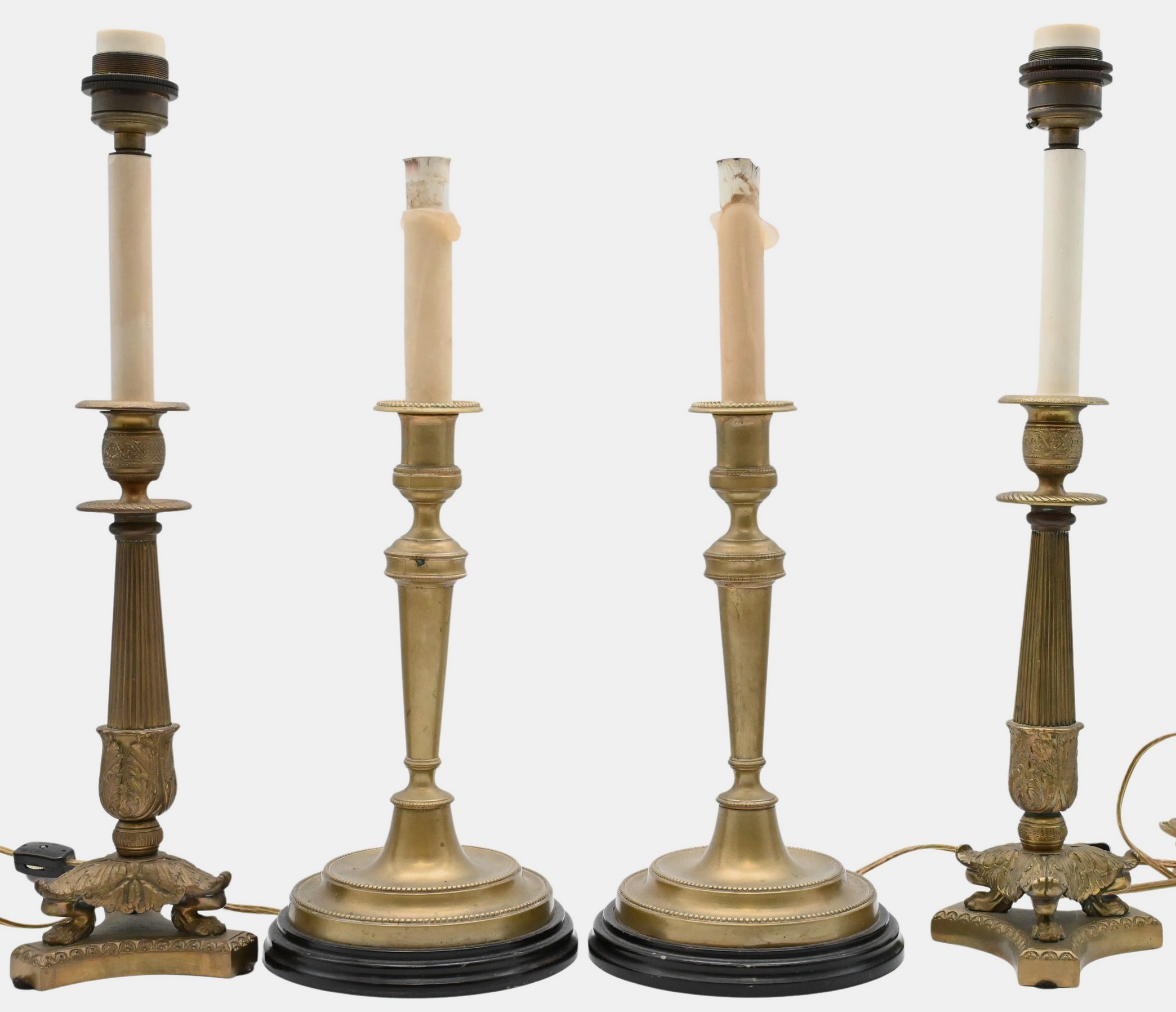 Two Pairs of Brass Regency Table Lamps