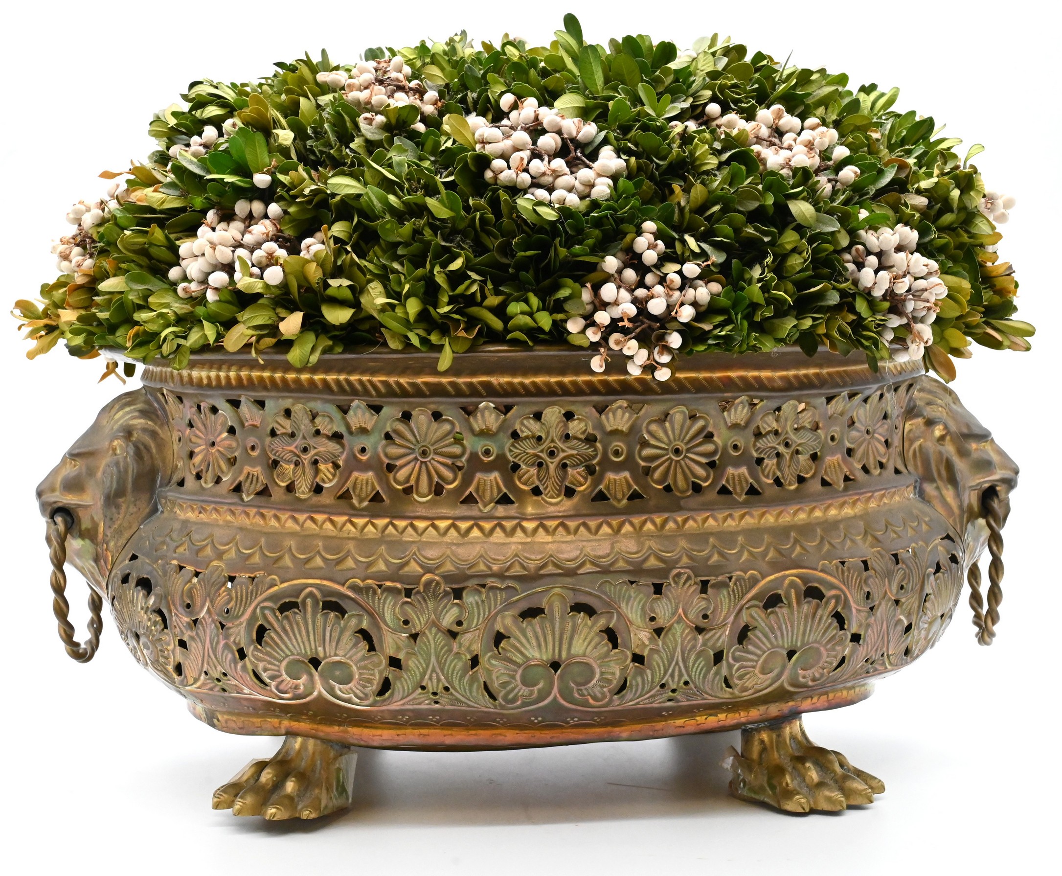 Large Dutch Brass Lion Mask Jardinière