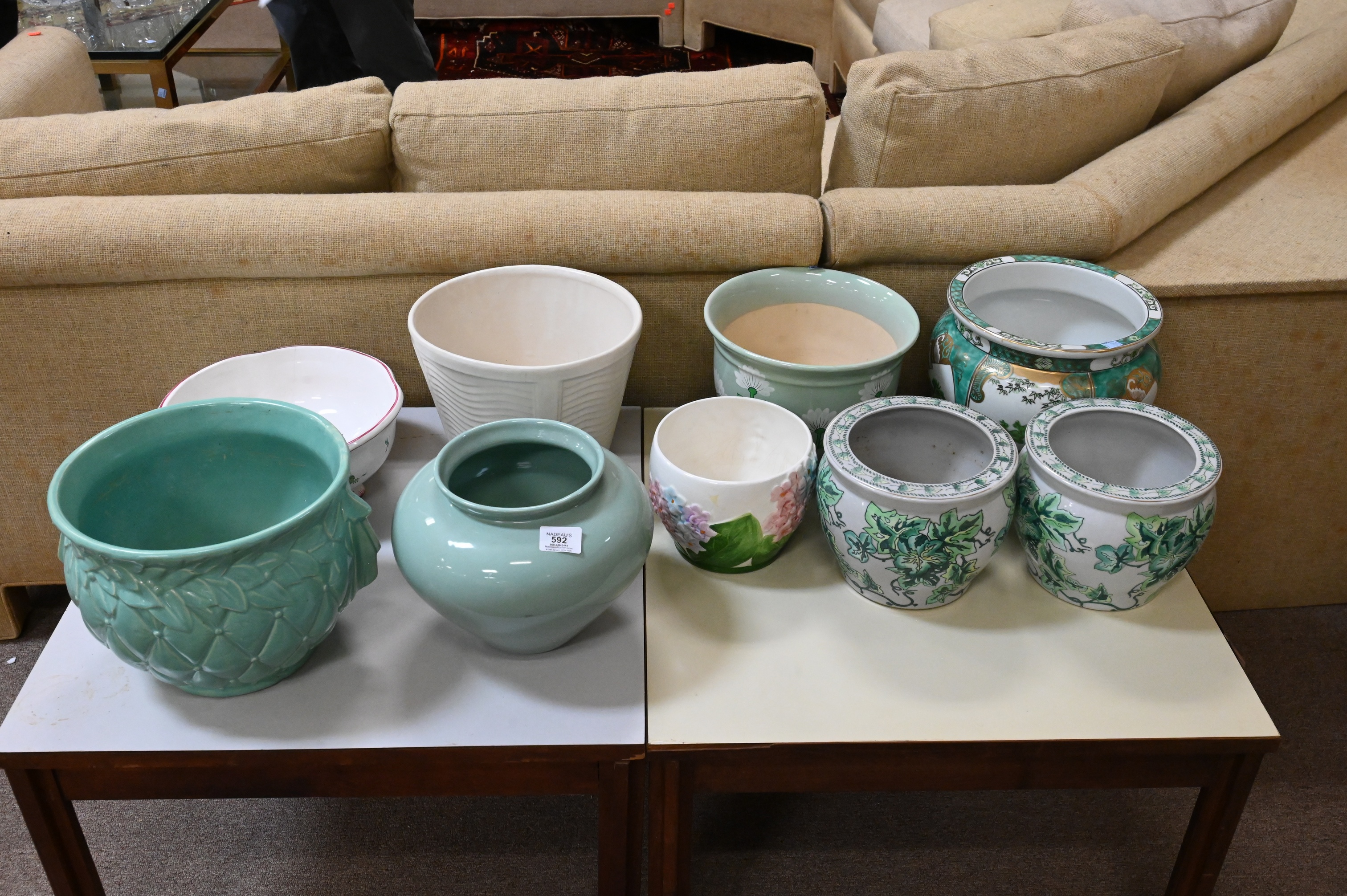 McCoy ceramics, Gold Imari baluster form green and gilt, pair of ivy motif planters, French jardiniere etc…