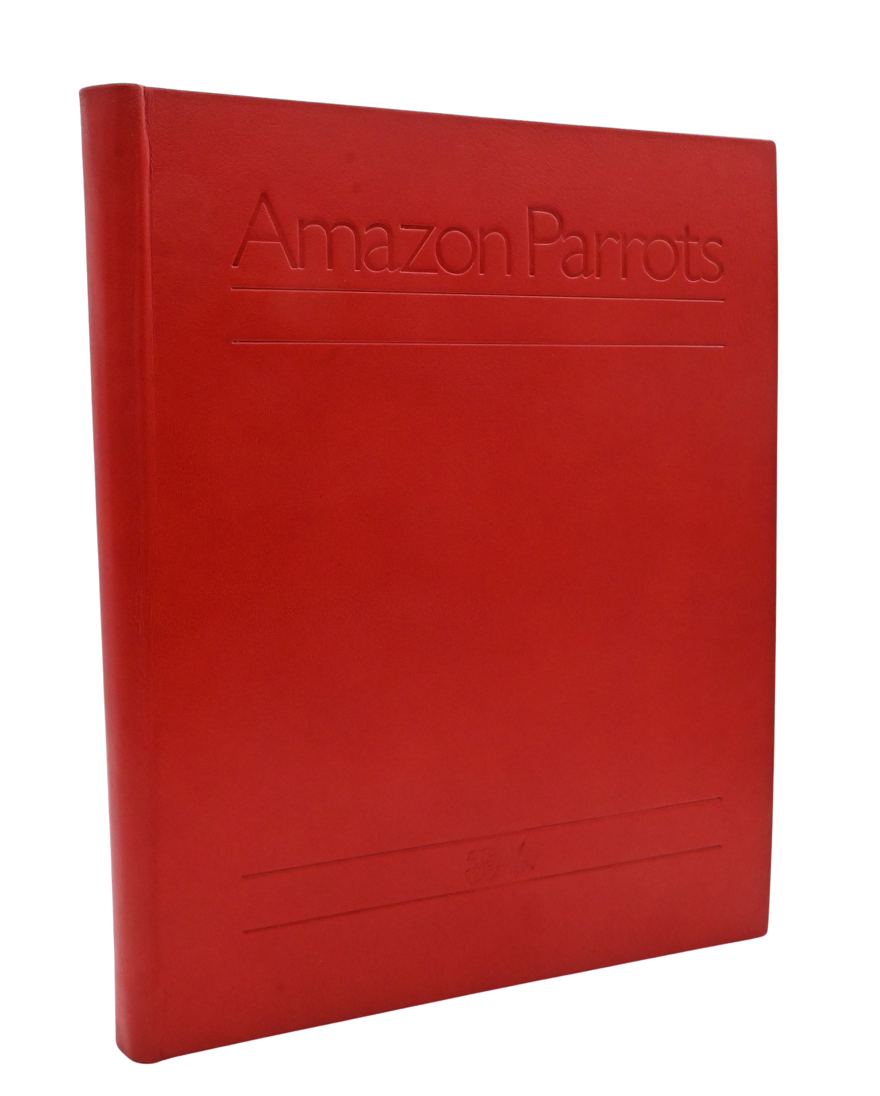 London, 1983. Deluxe limited-edition folio of paintings by Elizabeth Butterworth, with text by Rosemary Low, devoted to detailed studies of Amazon parrots. Issued by Rodolphe d’Erlanger / The Basilisk Press, London, and presented in the original red leather-covered portfolio, gilt- and blind-stamped to the cover and spine.