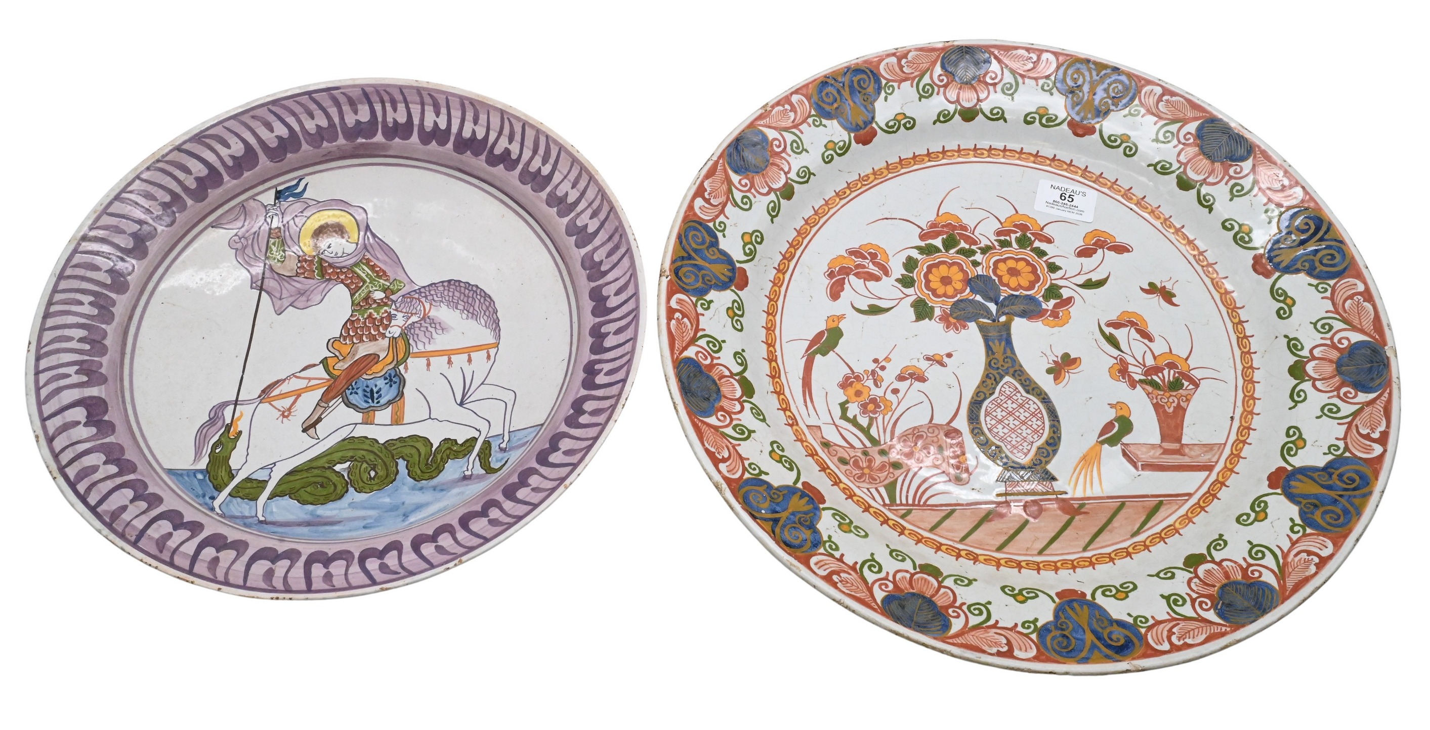 Two Large Delft Polychrome Deep Chargers