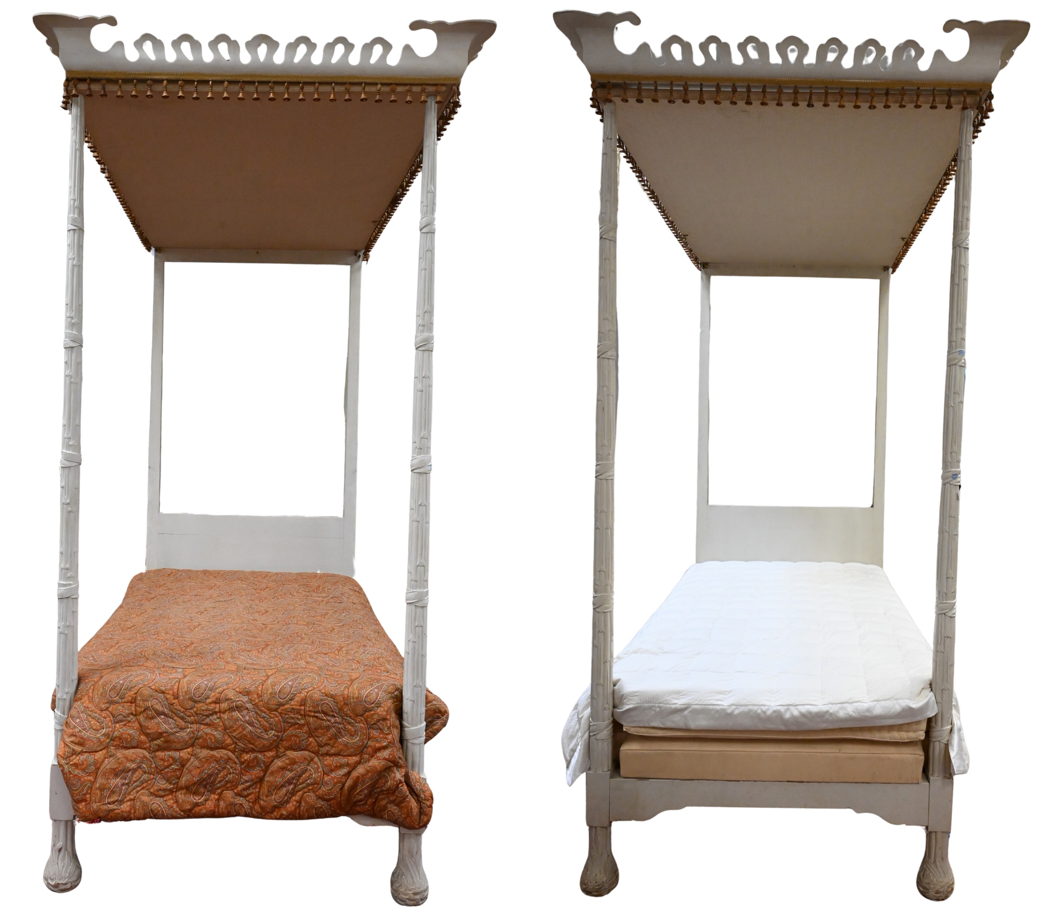 Pair of Custom Made Italian Neoclassical Painted Twin Size Canopy Beds