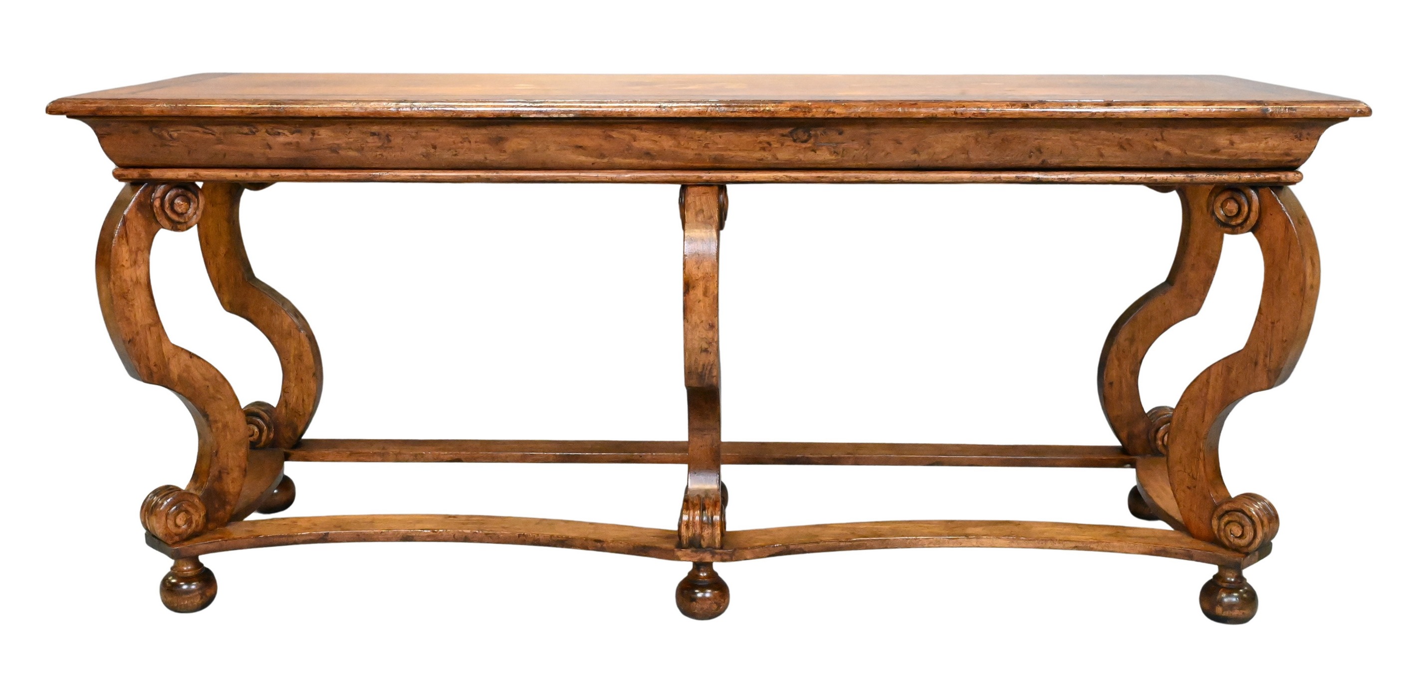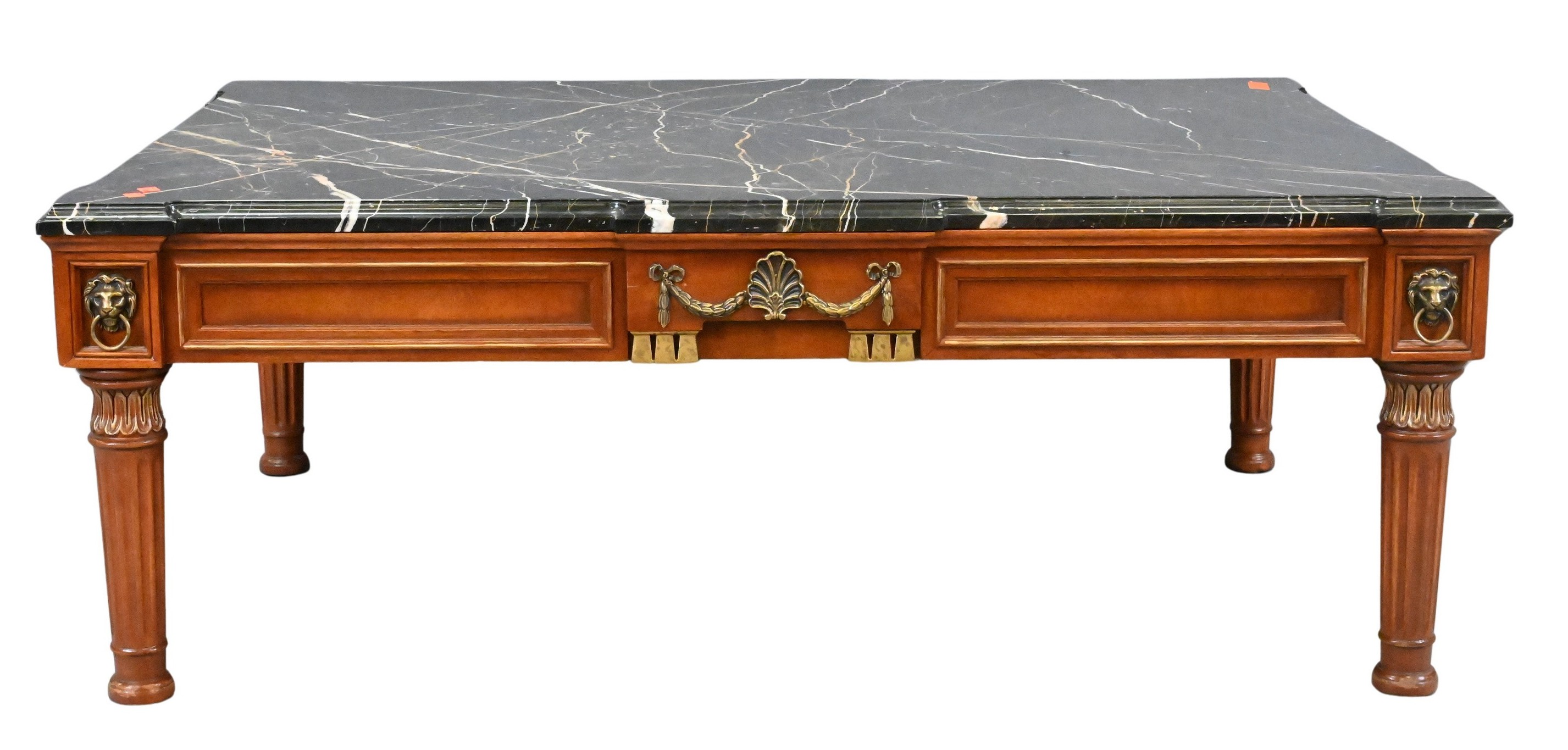 having corner lion masks over fluted legs, labeled on underside