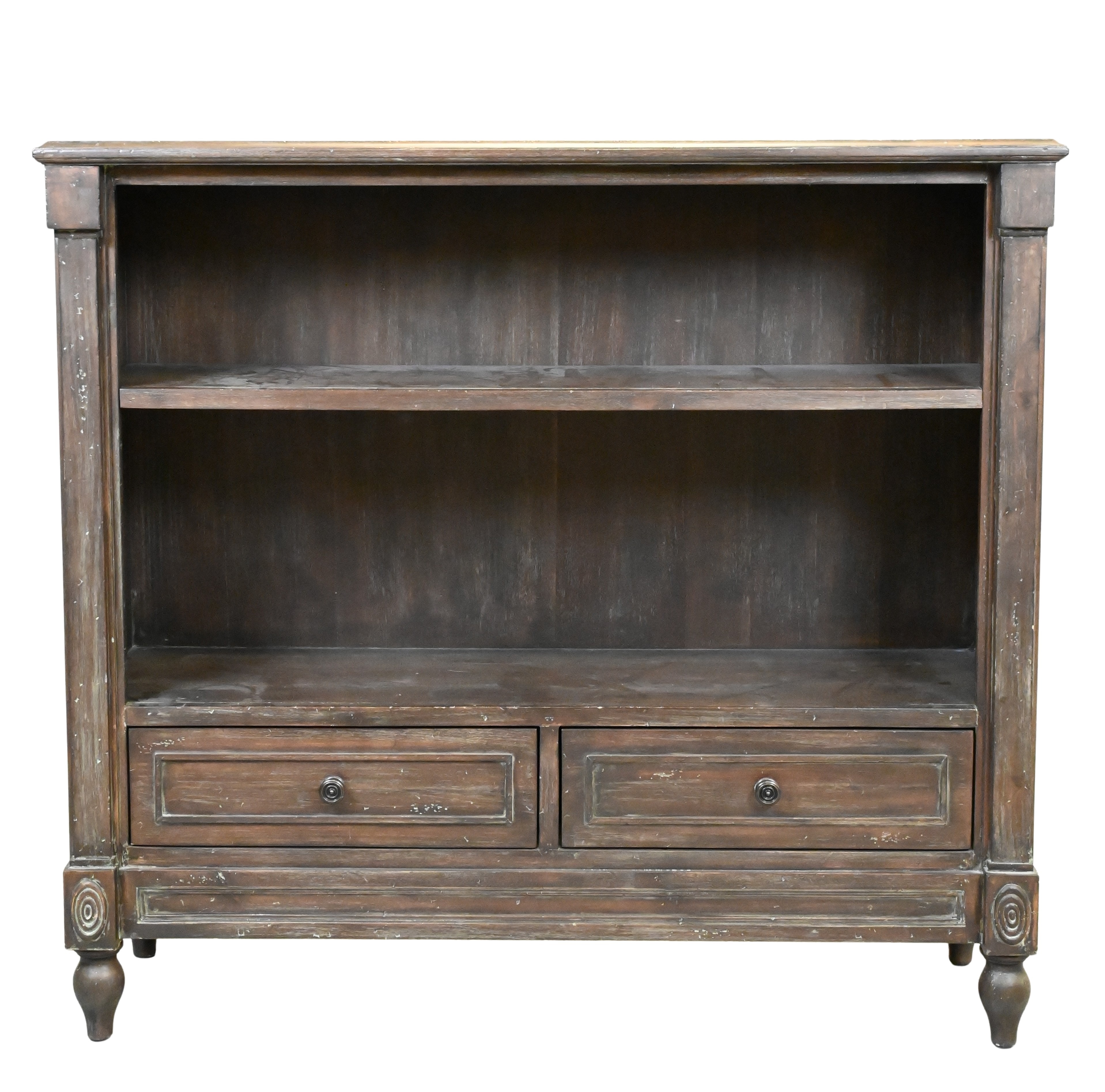in two parts, having John Stuart marking to back, can be separated into two stand alone bookcases if desired, one with finish loss to the left side