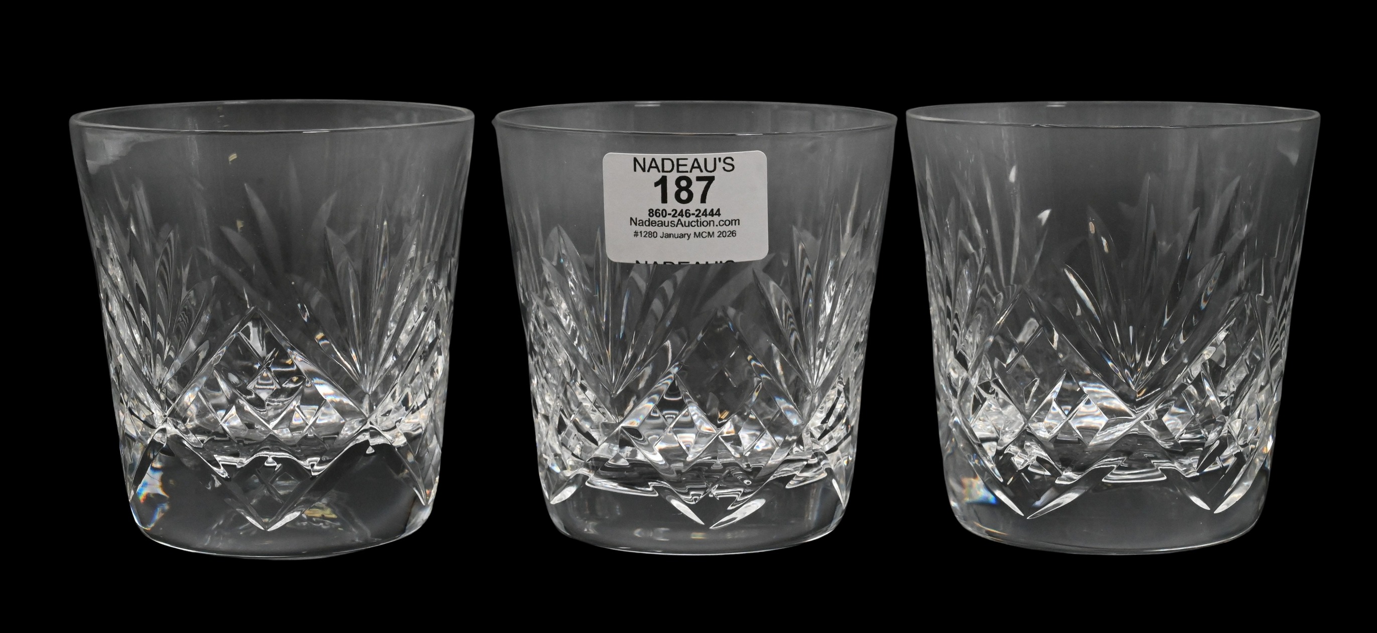to include 13 water goblets, 2 red wines, 10 sherry, 7 cordials, and 11 champagnes, all marked