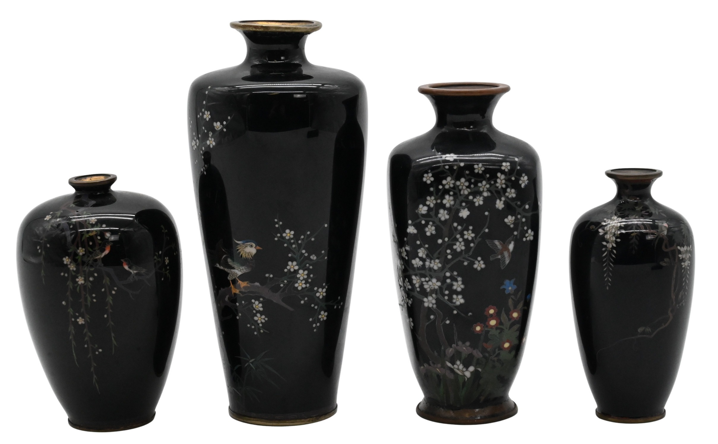 Group of Four Japanese Fine Wire Cloisonne Vases