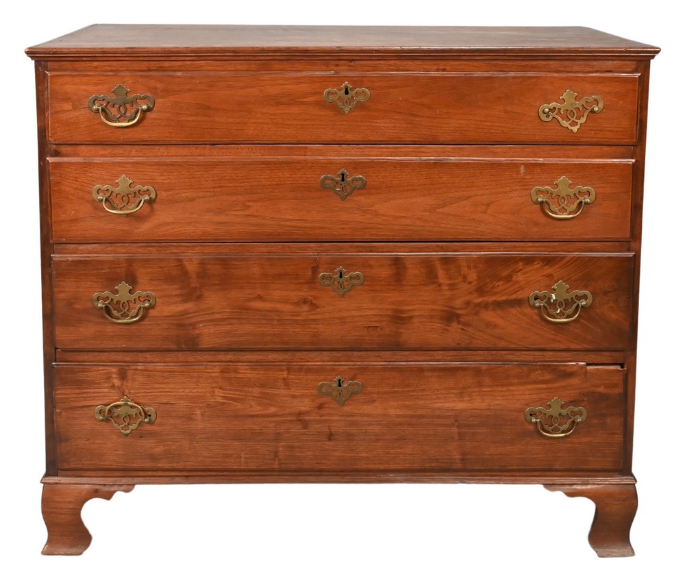 Chippendale Walnut Chest of Four Drawers, on ogee feet, height 34 inches, top 19 1/2″ x 39 1/2″. Provenance: Estate of Florence Yannios, Cheshire, CT.