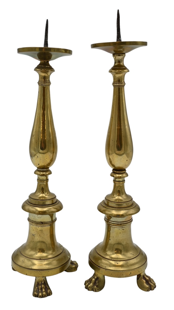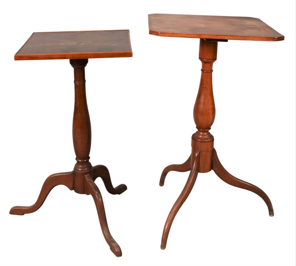 Two Federal Cherry Candle Stands, one with molded top, heights 27 and 30 inches. Provenance: Estate of Florence Yannios, Waterfront Home, Guilford, CT.