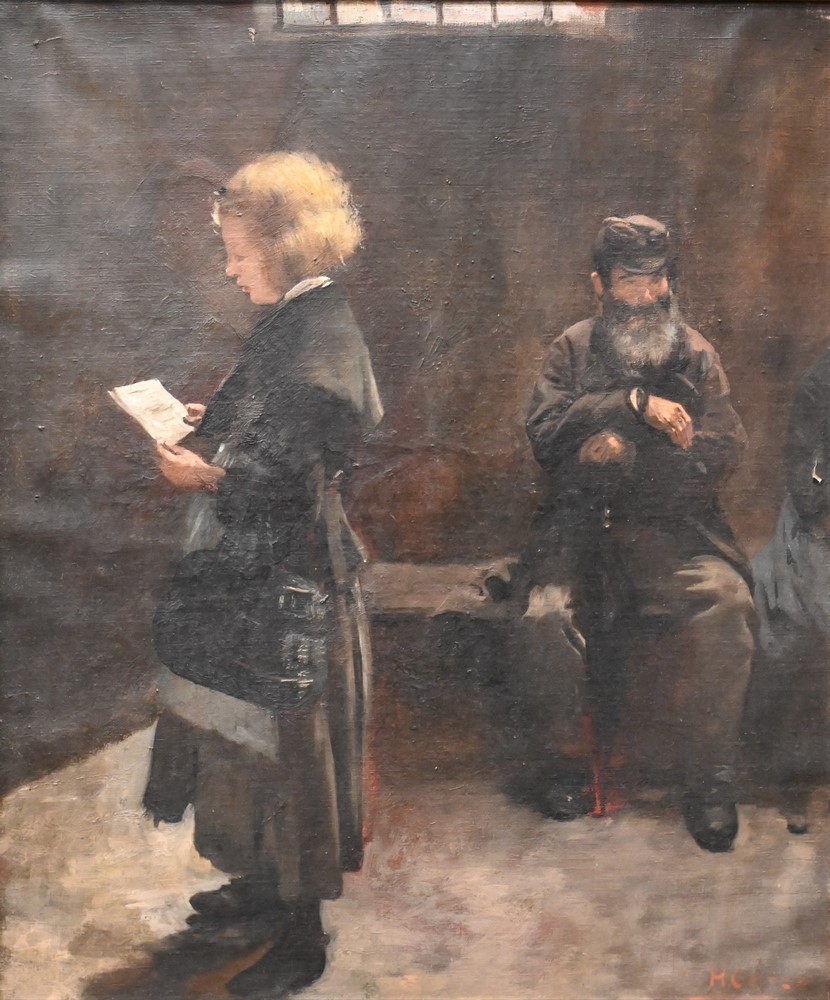 Henri Gervex (1852 – 1929), reading a letter to a gentleman on a bench, oil on canvas, signed H. Gervex lower right, tag on back, sale #7831, January 9.