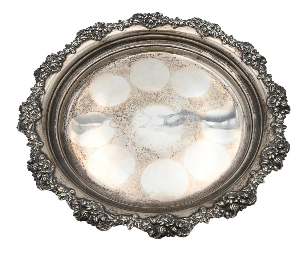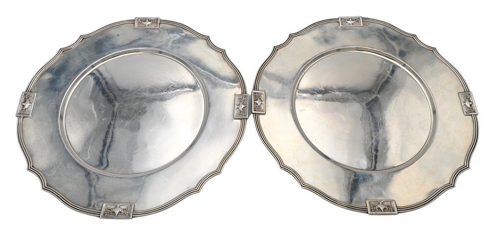 Set of 12 Gorham Sterling Silver Service Plates, having urns on each side, in Neiman Marcus felt bags, fine marks on each, diameter 11 inches, 173.9 t.oz.