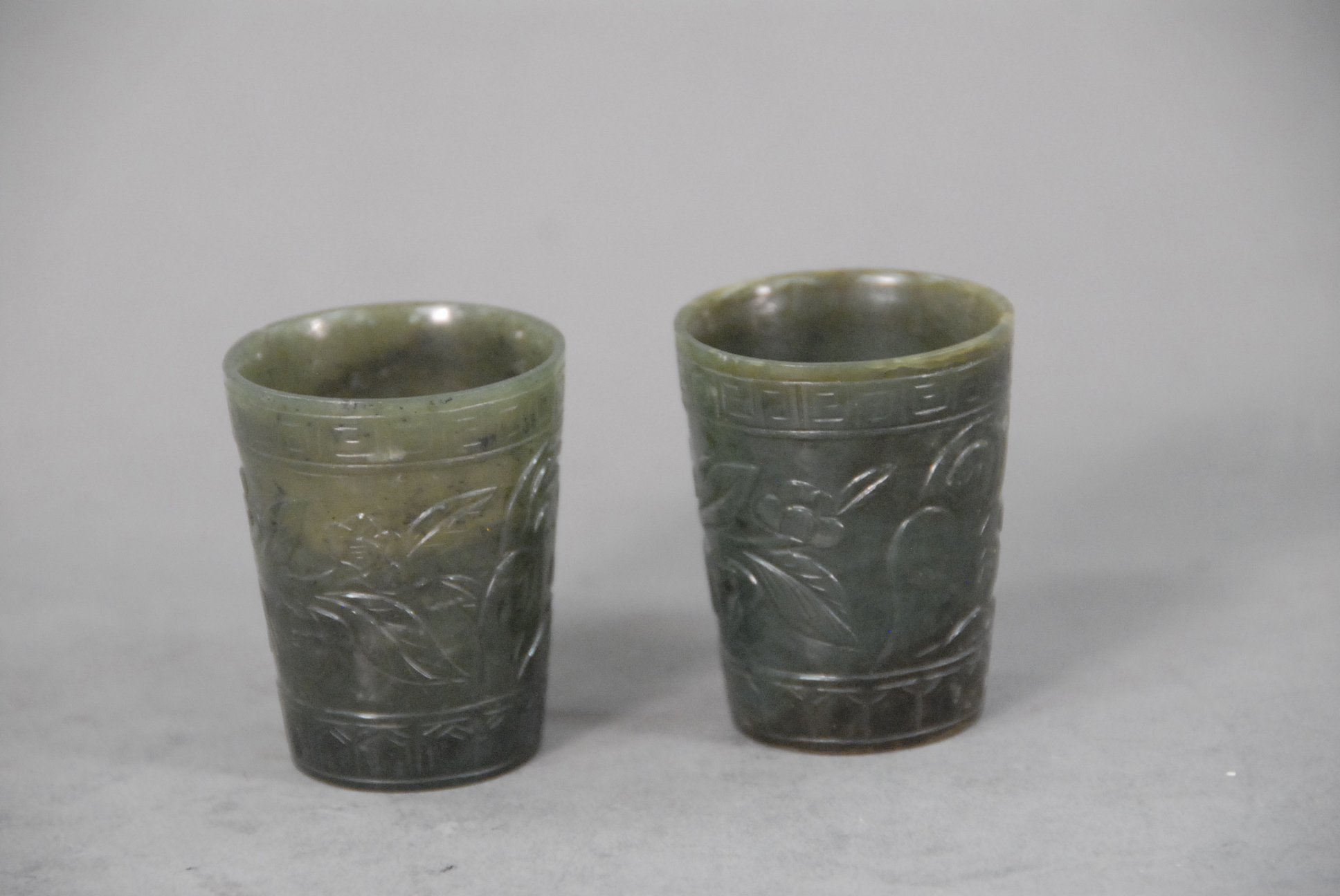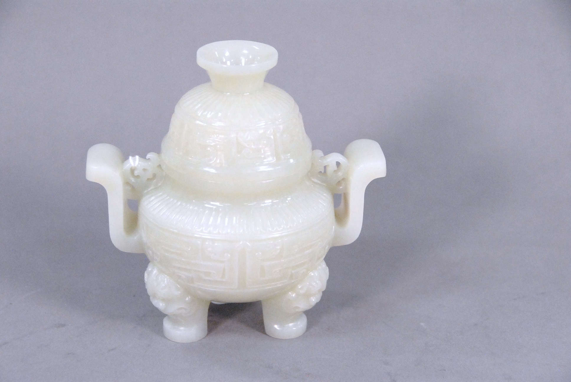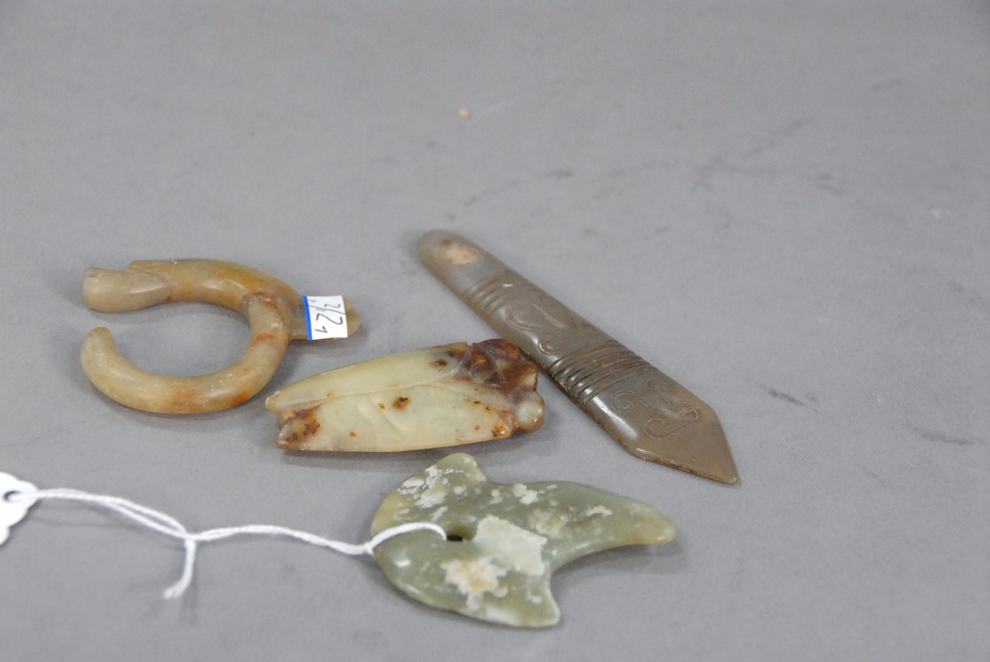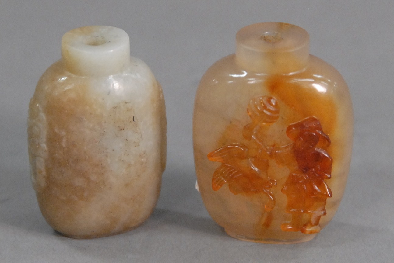 Group lot of jade, jadeite, and agate to include: white jade phoenix bird and eggplant, spinach green jade eggplant, reticulated carved jade foo-dog and vase, and an agate stone.