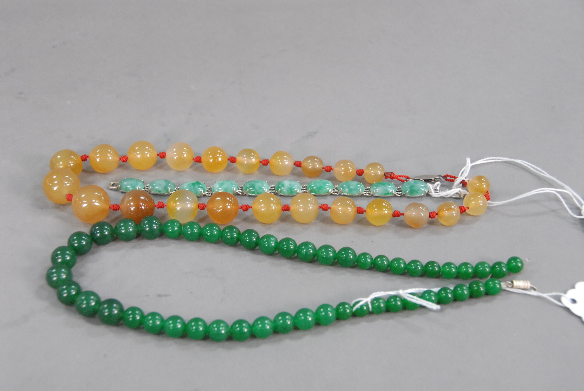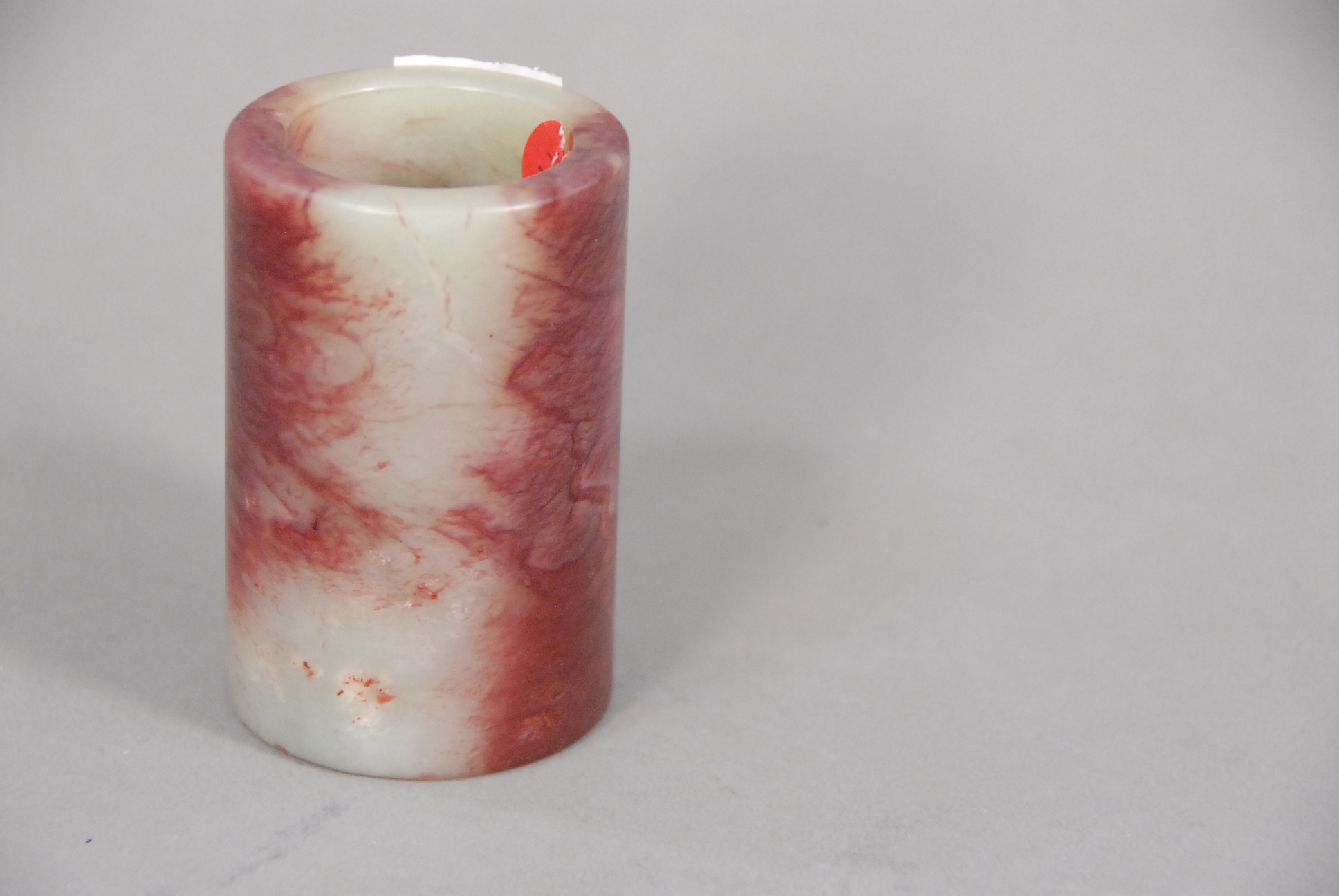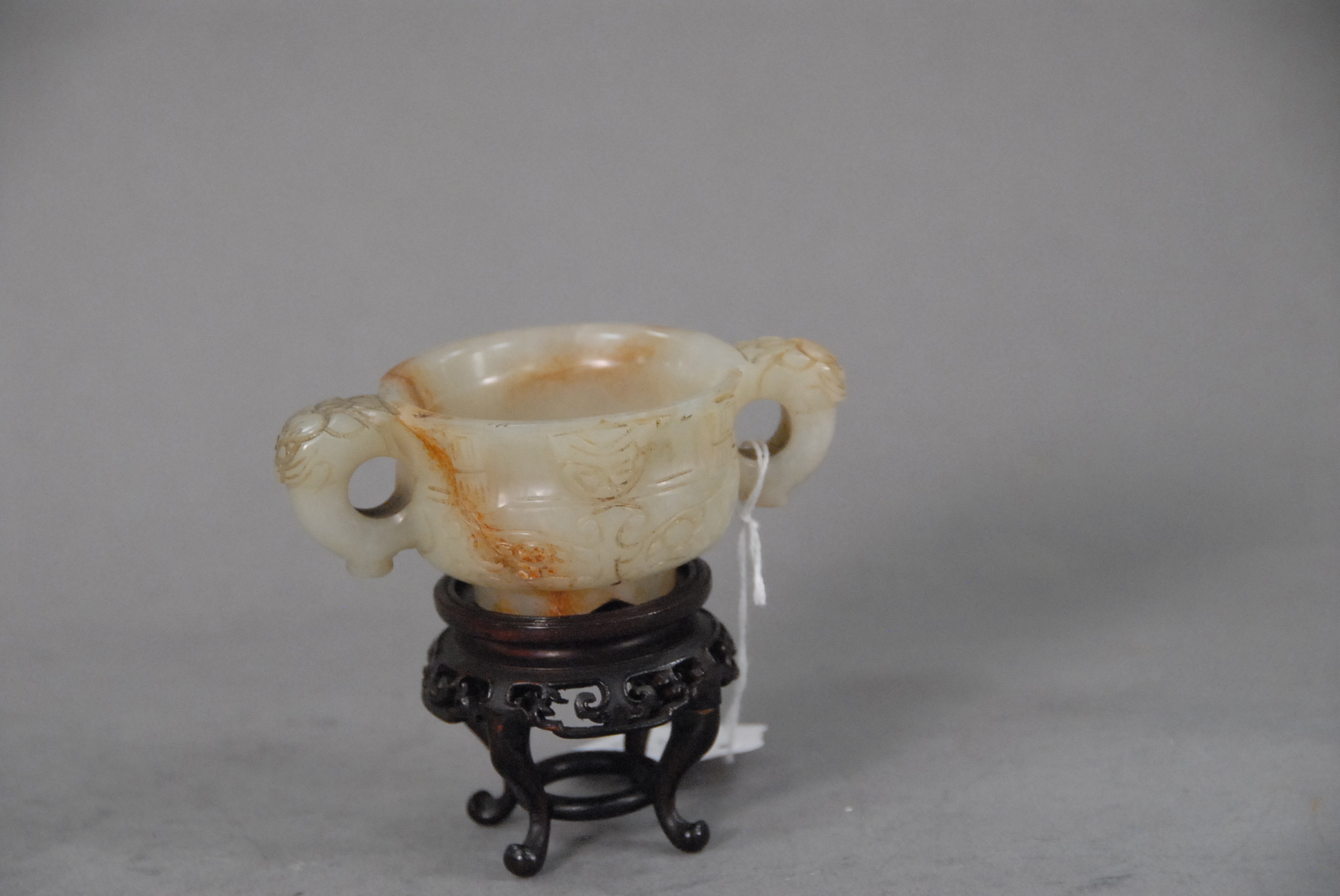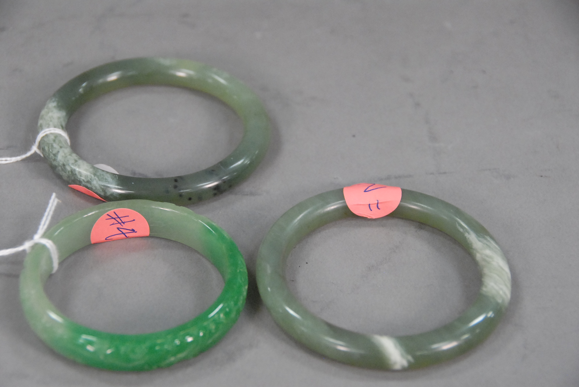 Group lot of jade, jadeite, and agate to include: white jade phoenix bird and eggplant, spinach green jade eggplant, reticulated carved jade foo-dog and vase, and an agate stone.