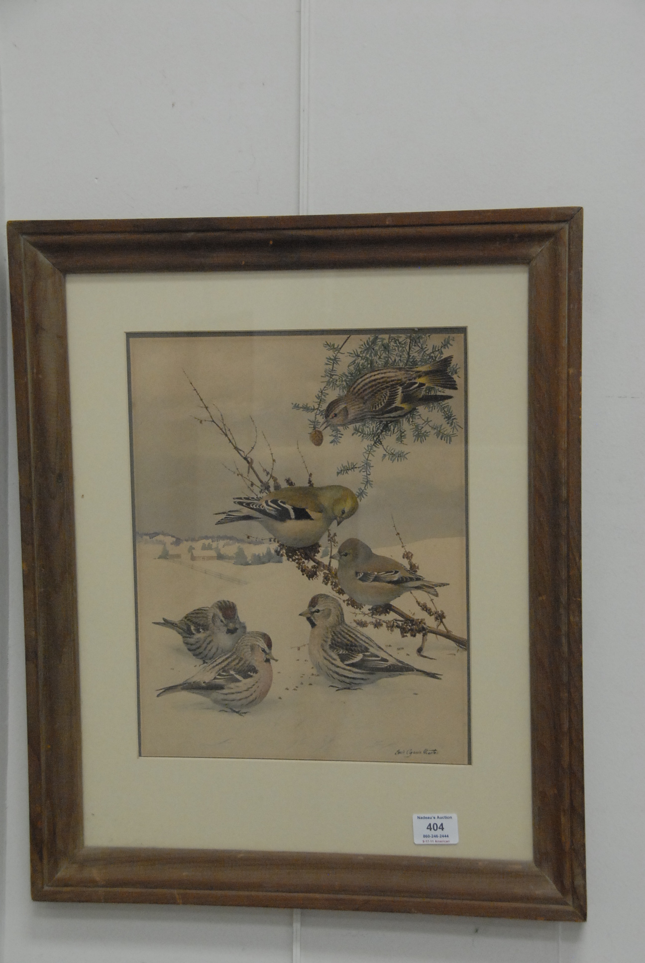 Louis Agassiz Fuertes 1874 – 1927 UNTITLED BIRDS watercolor signed lower right Louis Agissiz Fuertes having Haley & Steele Mass lable mounted on pulp board Property of Dorothy P. Wheatland, purchased from Vose Gallery