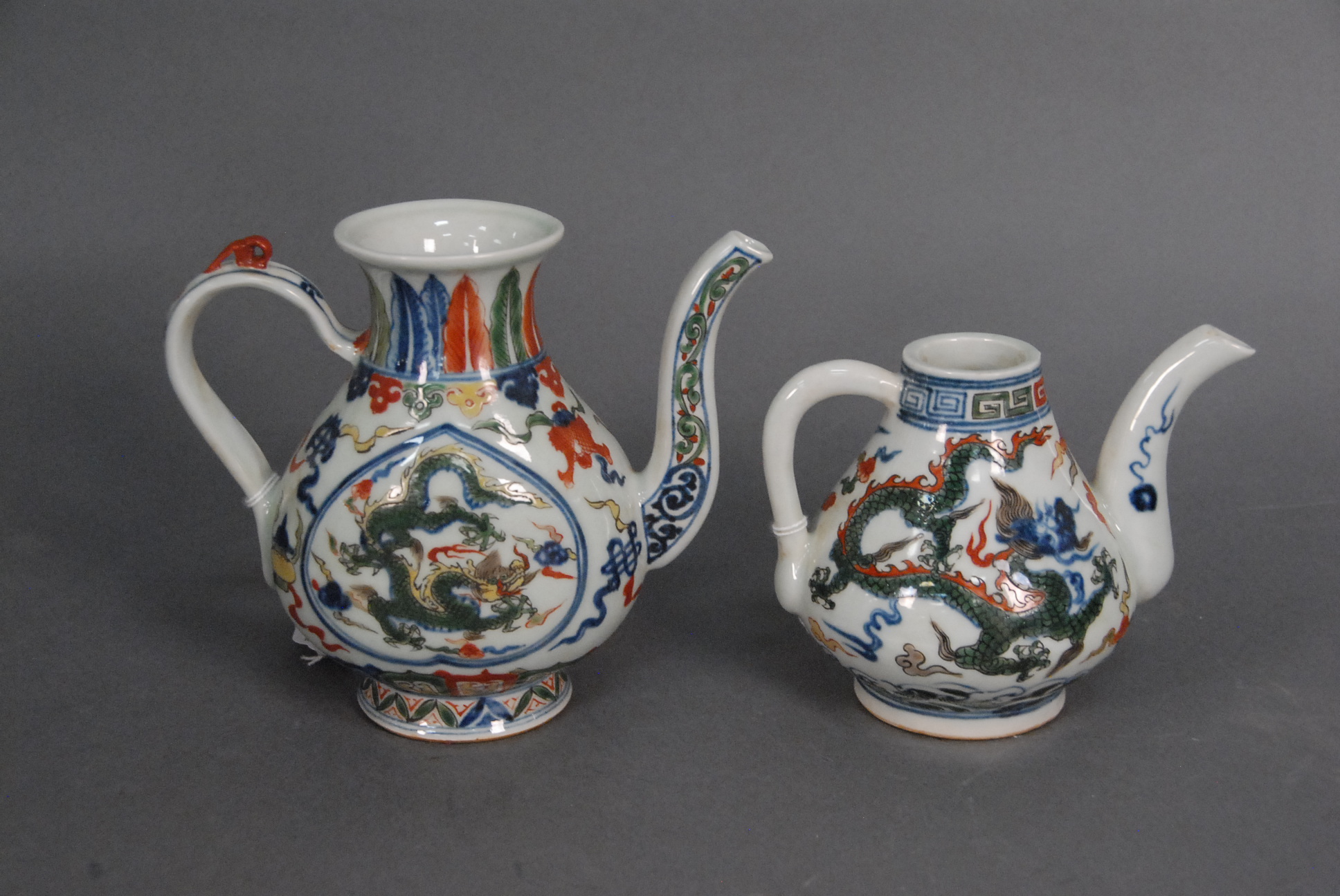 Two Imari porcelain teapots with copper red five claw dragons, hts. 6in. & 4 1/2in.
