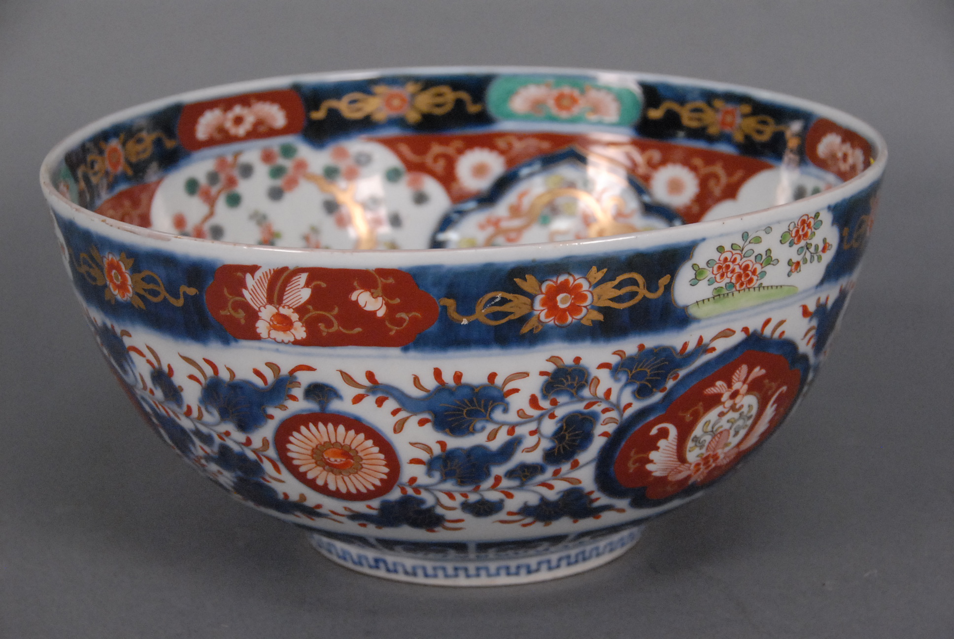 Large Imari bowl with phoenix and dragons as is, base broken and repaired dia. 12in. ht. 6in.