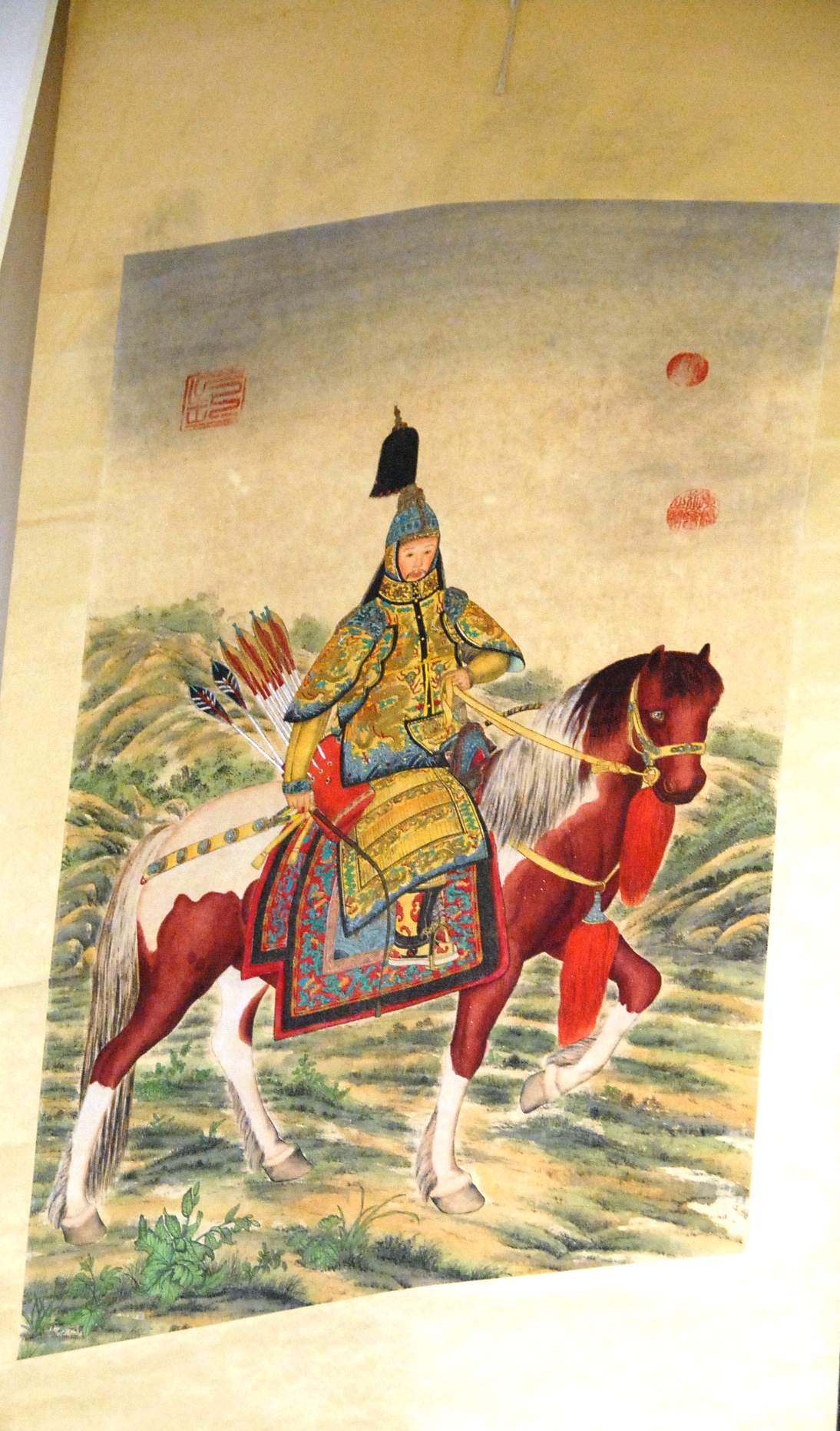 Qianlong scroll of warrior riding horse, 33 x 21.