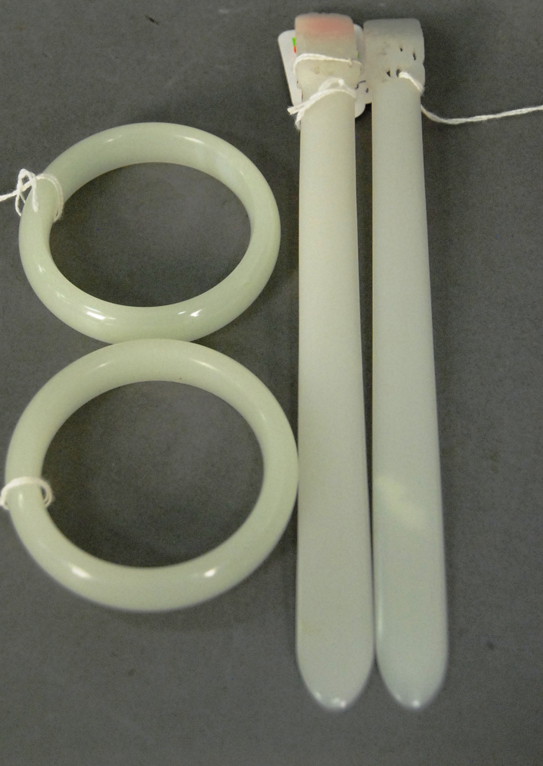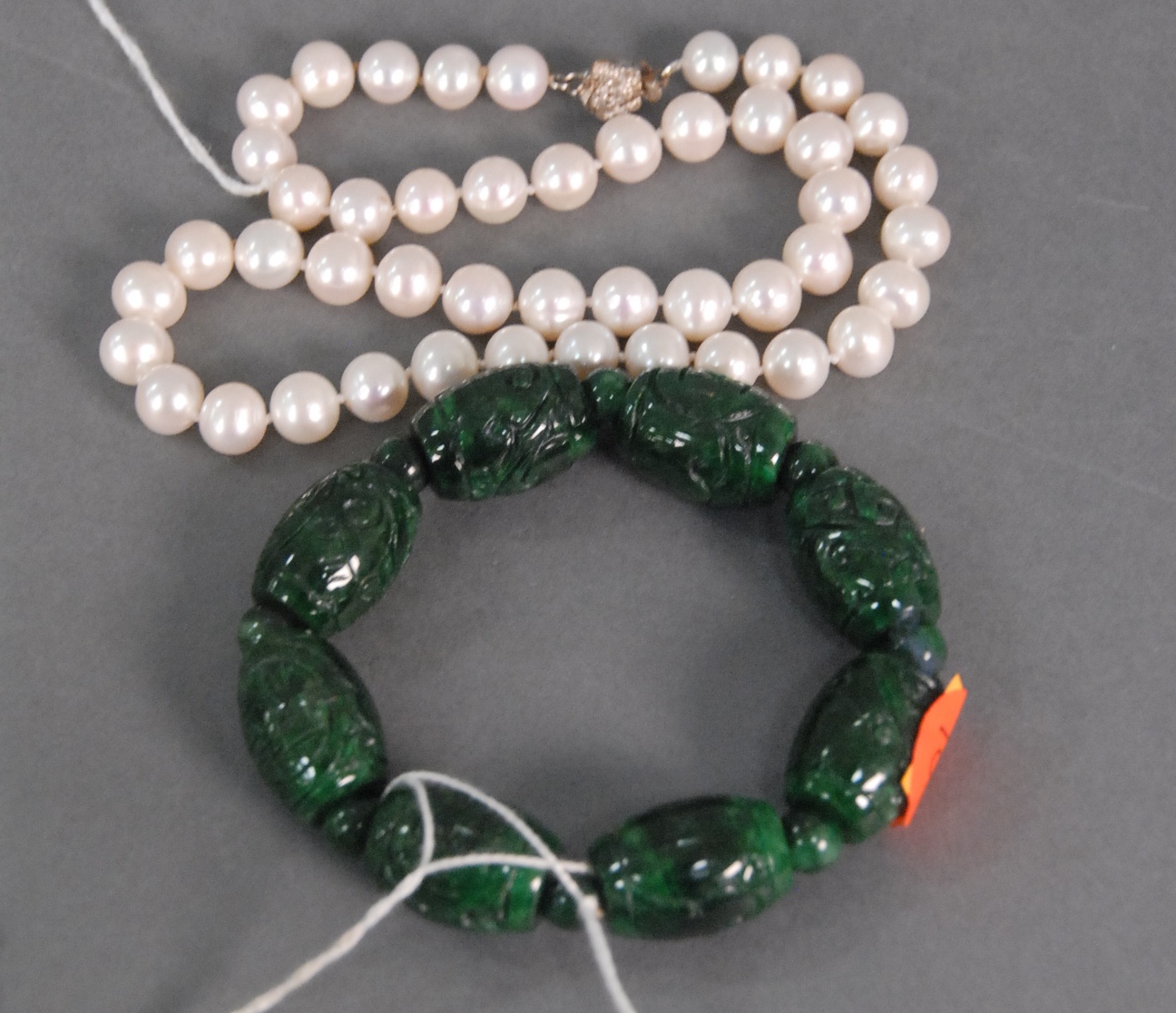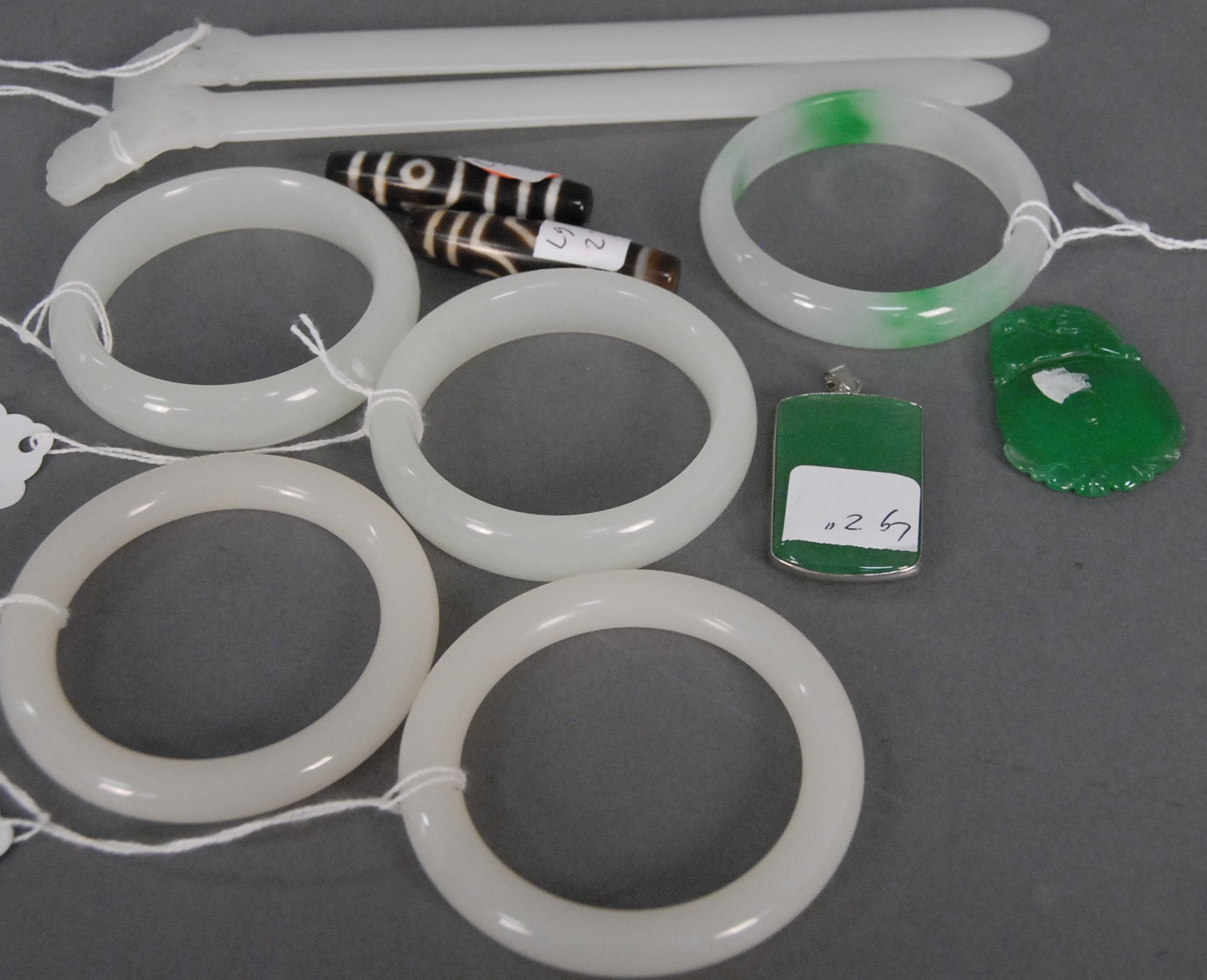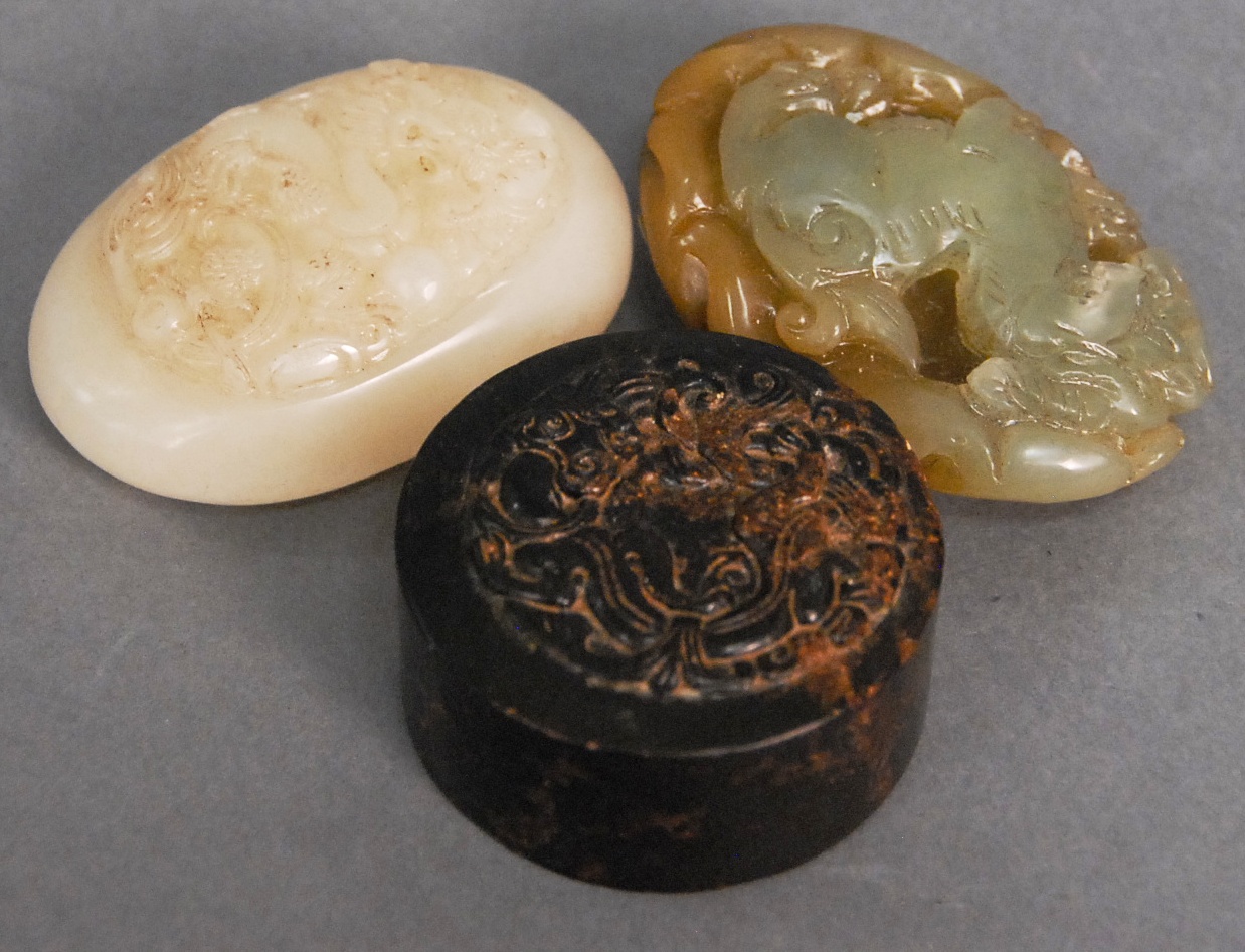 Three Oriental scrolls watercolor on paper landscape 14 x 19, watercolor on silk bird on branch 26 x 9, and watercolor on paper sketch man and Guanyin 12 x 14.