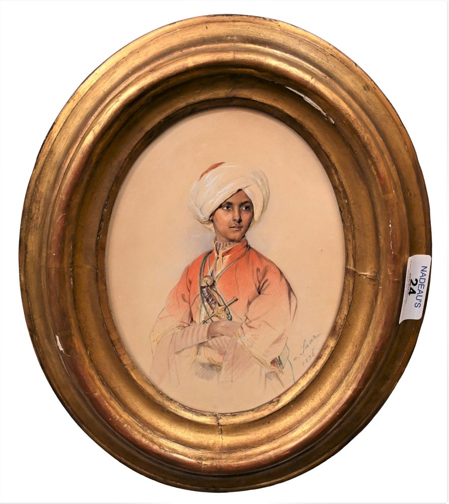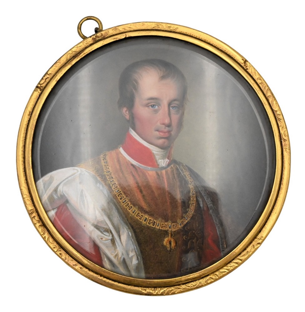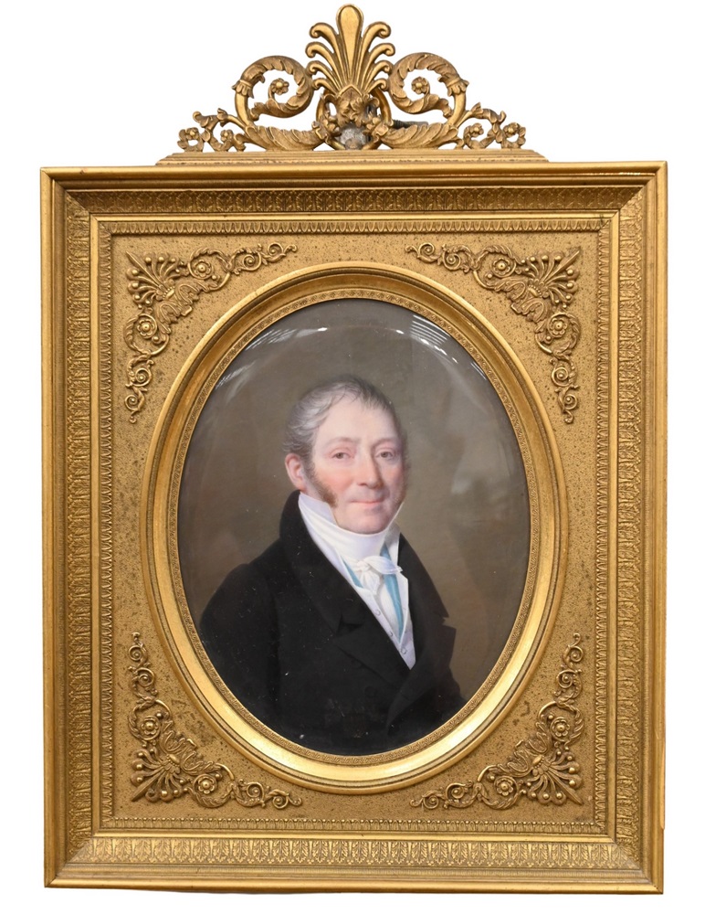 Jean Pierre – Frederic Barrois 1786 – 1841 portrait of gentleman oil in French gilt bronze frame signed lower right Barrois 1845, “Claude Monet, agent de Change Financier Sous Napoleon 1st” (Claude Monet Financial Officer under Napoleon 1st) 6 x 4 inches