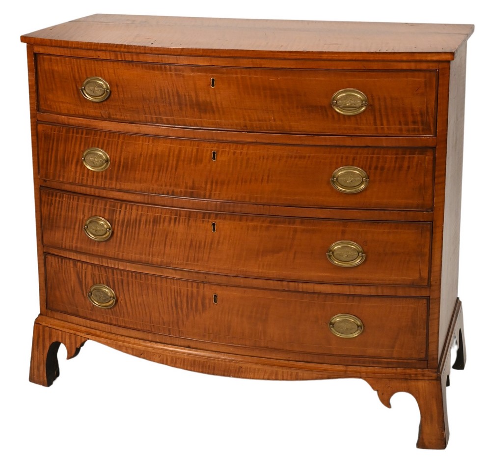 having four drawers flanked by fluted quarter columns set on ogee feet