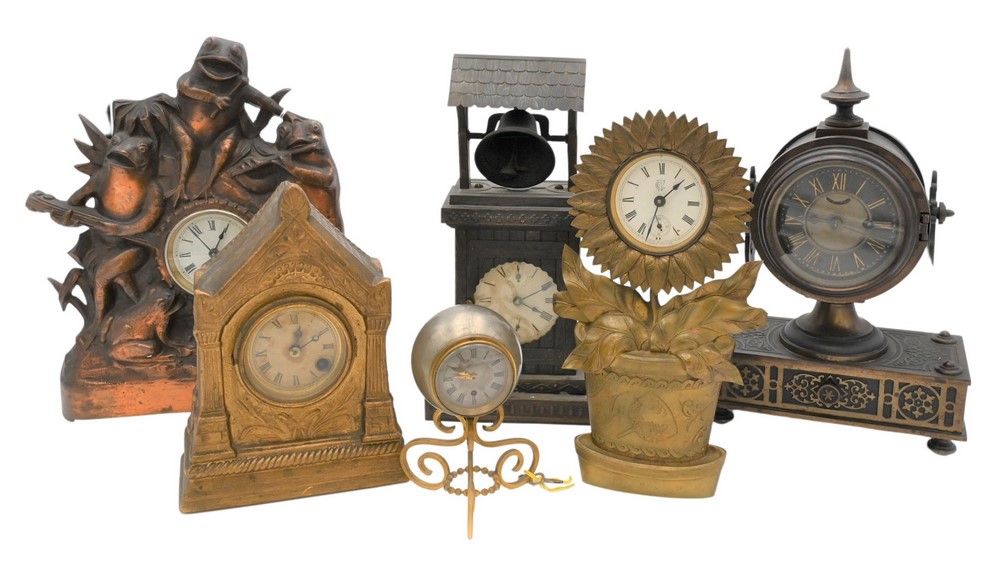 to include a brass sunflower novelty clock by Waterbury Clock Company;