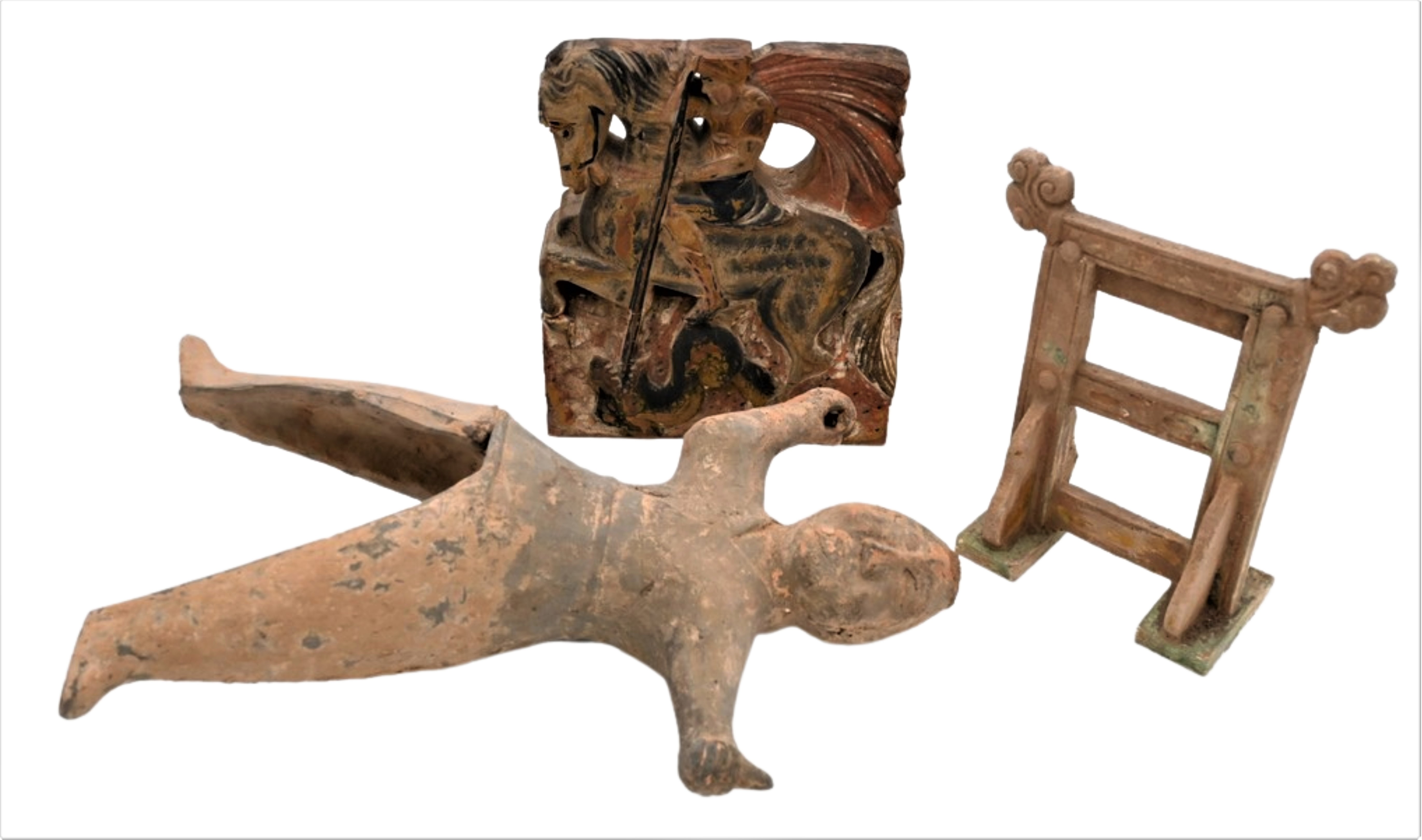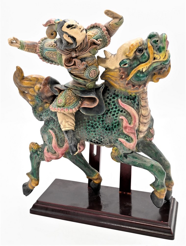 along with a carved and painted wood warrior on horse