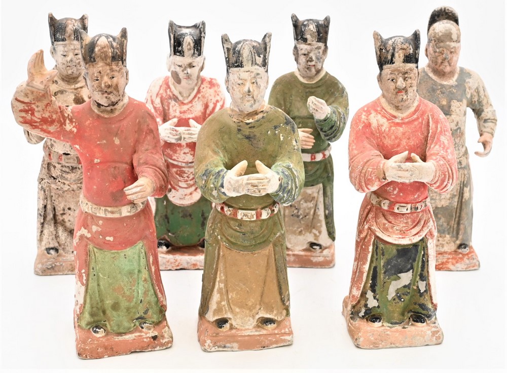 Set of Seven Painted Pottery Tomb Figures