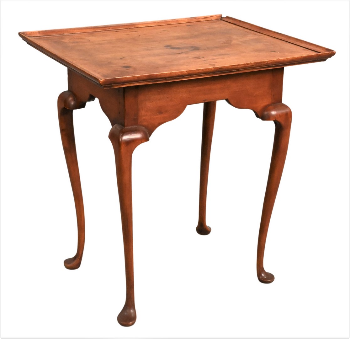 Queen Anne Style Tea Table, having tray top on cabriole legs, partially made up of old elements, height 29 1/2 inches, top 21 1/4″ x 26″. Provenance: Estate of Peter Tillou, Litchfield, Connecticut.