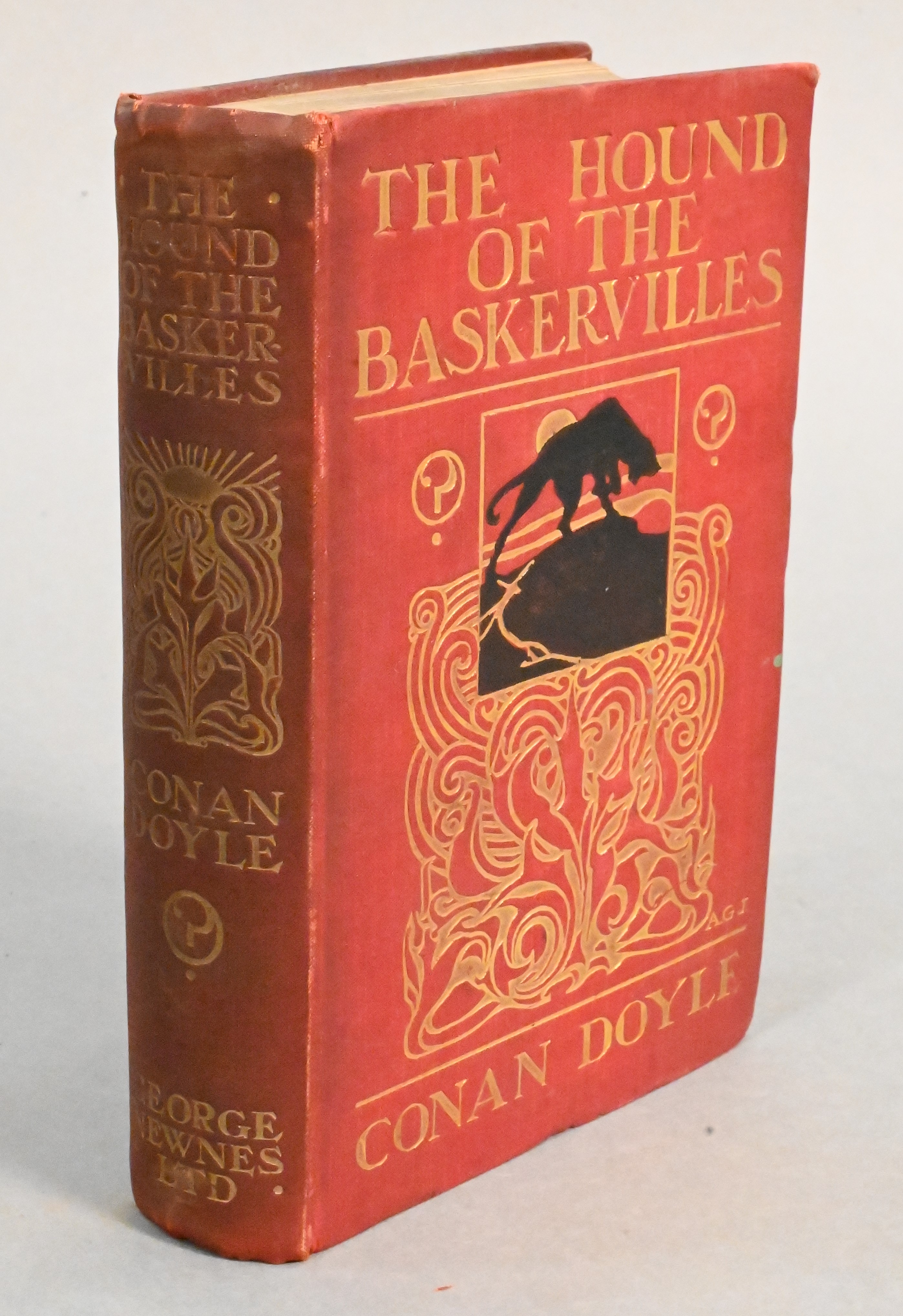 First Edition of Arthur Conan Doyle’s “The Hound of Baskervilles, Another Adventure of Sherlock Holmes”, published in London in 1902 by George Newnes, first issue with “you” for “your” on page 13, line 3, Provenance: Estate of Cyril H. Moore Jr, Kent, Connecticut.