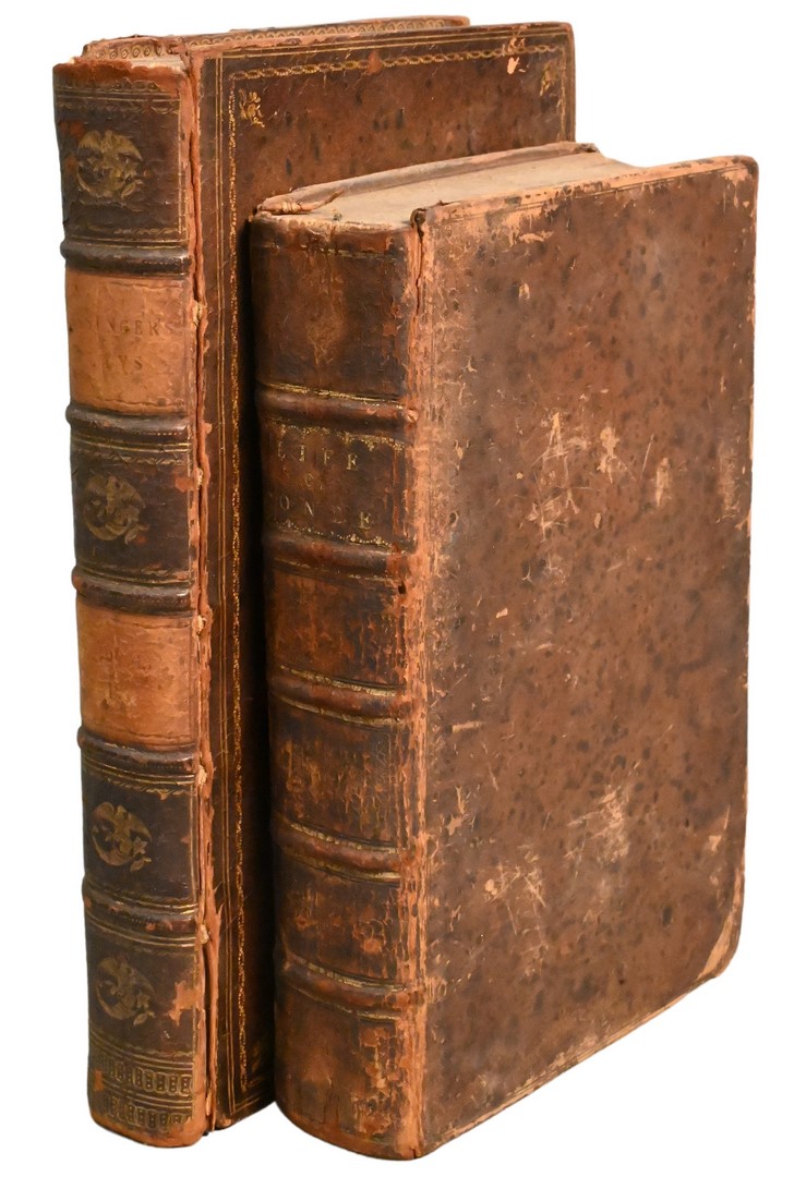 Two Leather Bound Books, to include a first edition copy of “The Life of Lewis Bourbon, Late Prince of Conde”, published in 1693; along with one volume of “The Plays of Philip Massinger”, authored by W. Gifford, published in 1805, having handwritten signed letter by W. Gifford, Provenance: Estate of Cyril H. Moore Jr, Kent, Connecticut.