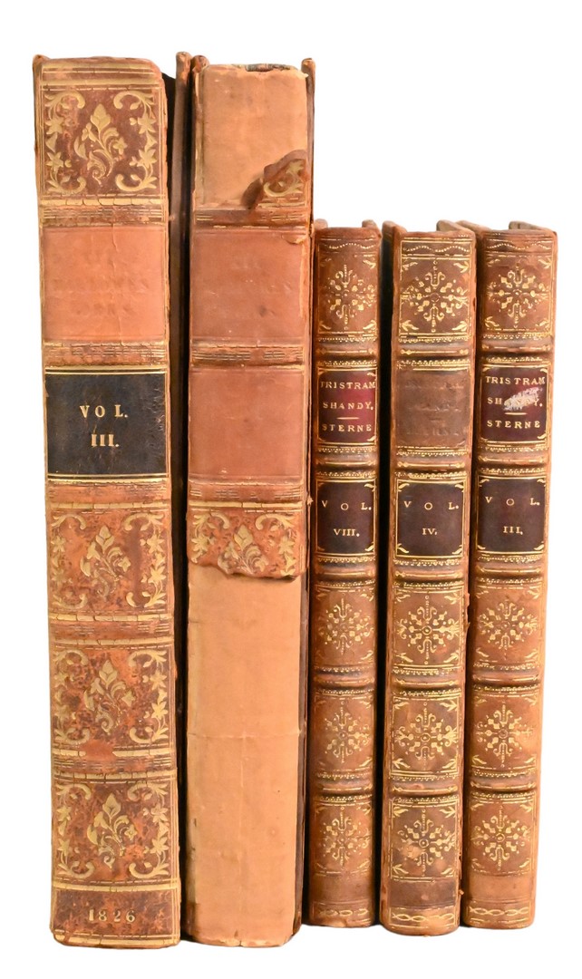 Two Partial Sets of Leather Bound Books, to include volumes 2 and 3 of “The Works of Christopher Marlowe”, published in 1726; along with volumes 3, 4 and 8 of “The Life of Opinions of Tristram Shandy”, published in 1761 (as is), Provenance: Estate of Cyril H. Moore Jr, Kent, Connecticut.