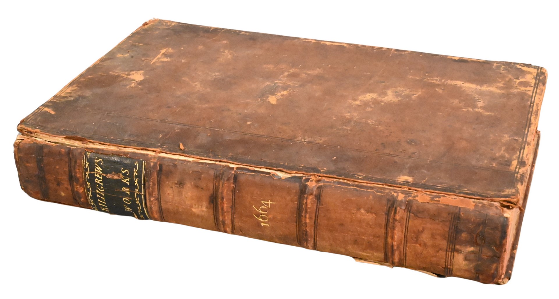 First Edition Leatherbound Copy of Thomas Killigrew “Comedies and Tragedies”, published in 1664, (front cover detached), Provenance: Estate of Cyril H. Moore Jr, Kent, Connecticut.