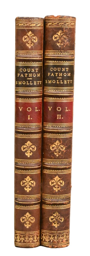 Complete Leather Bound First Edition Set of The Adventures of Ferdinand Count Fathom, by Roderick Random, published 1753 in London, Provenance: Estate of Cyril H. Moore Jr, Kent, Connecticut.