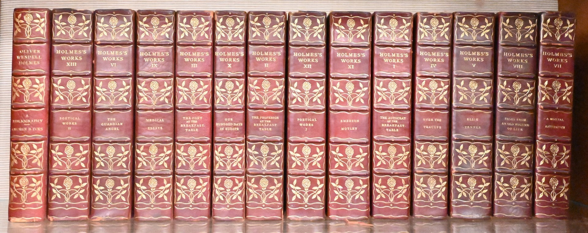 Complete 13 Volume Limited Edition Set of “The Works of Oliver Wendell Holmes”, #437/750, published in 1892, first volume having receipt from 1861, signed by Holmes, Provenance: Estate of Cyril H. Moore Jr, Kent, Connecticut.