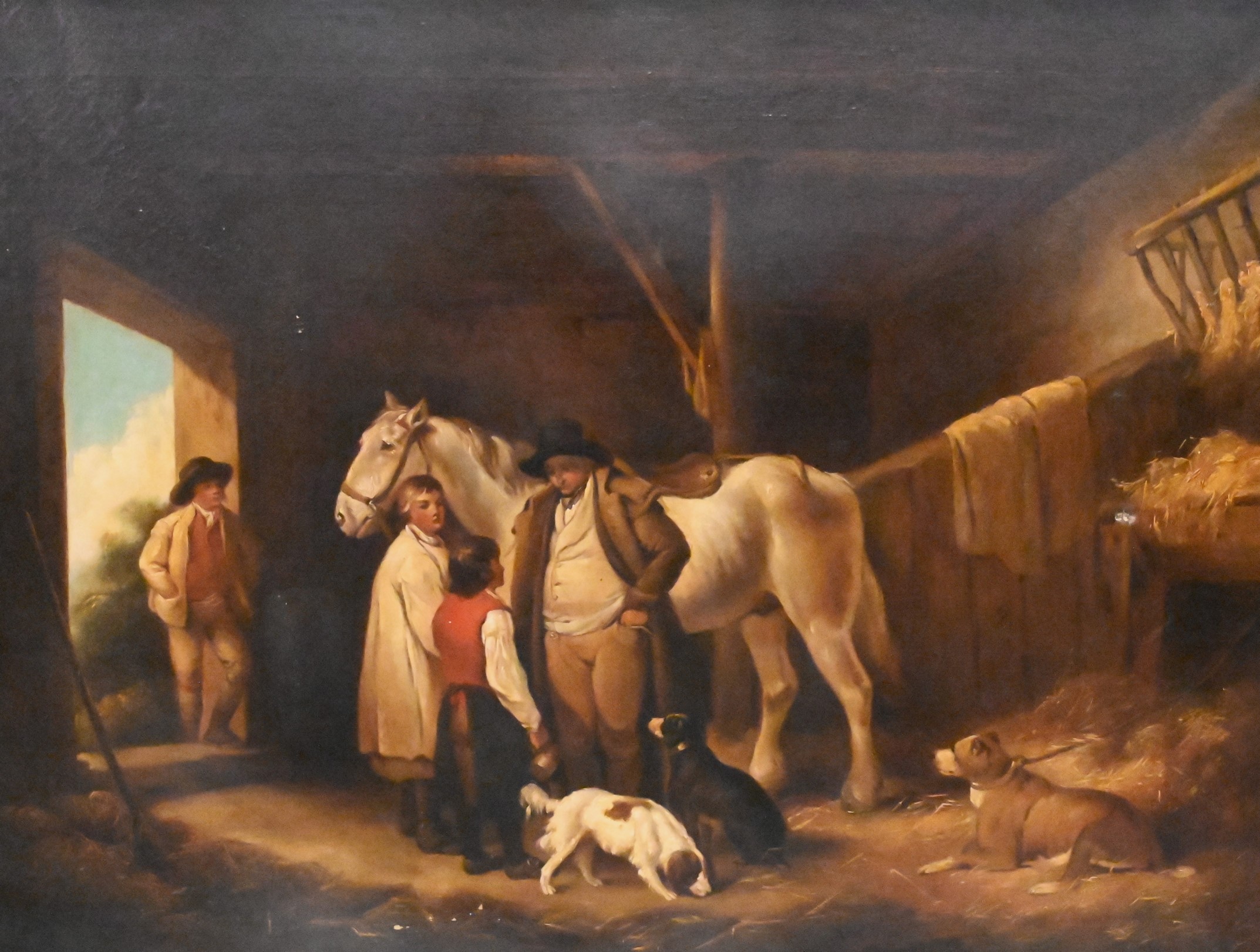 Stable Scene with horse and dogs