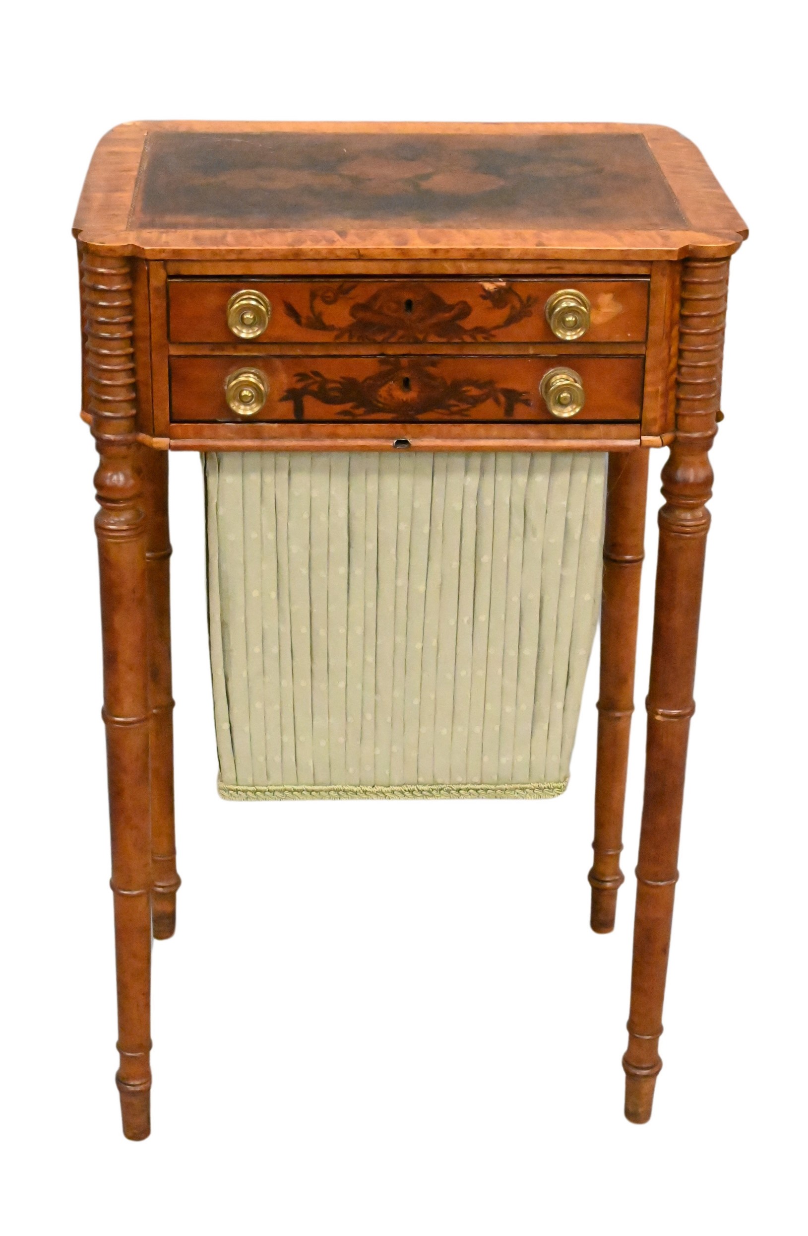 Federal Inlaid Figured Maple School Girl Decorated Work Table