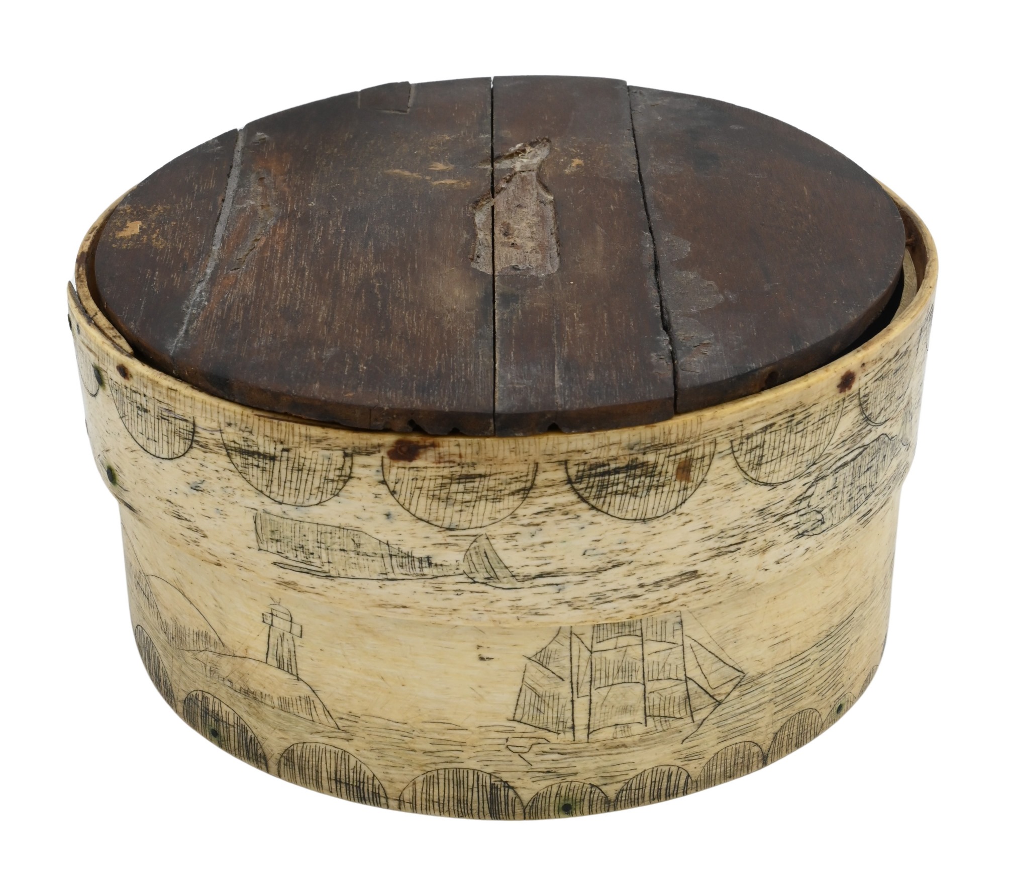 having wood bottom & wood top mounted with whale, 19th c.