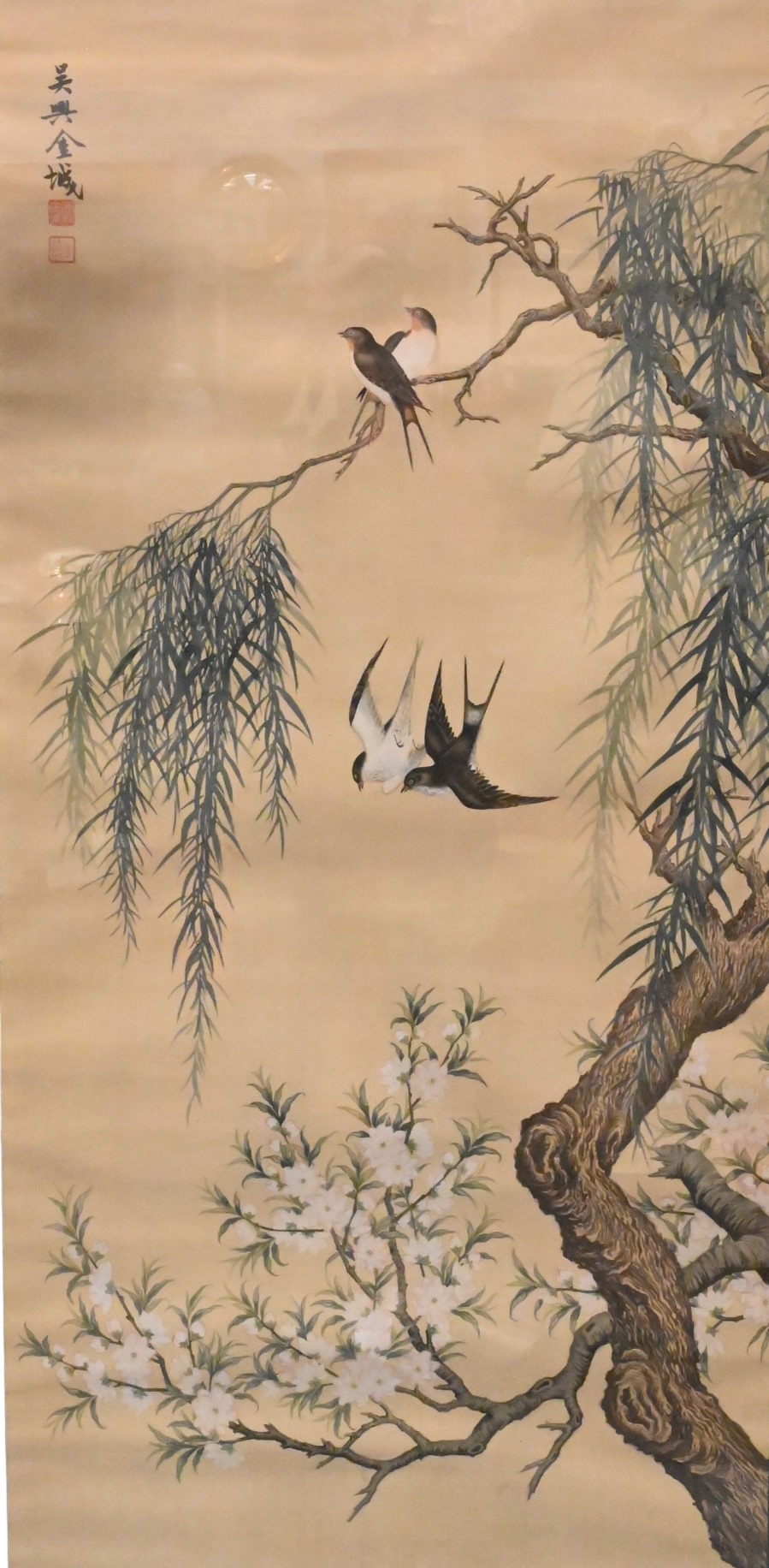 Heavy polychrome flowering branches and gilt border