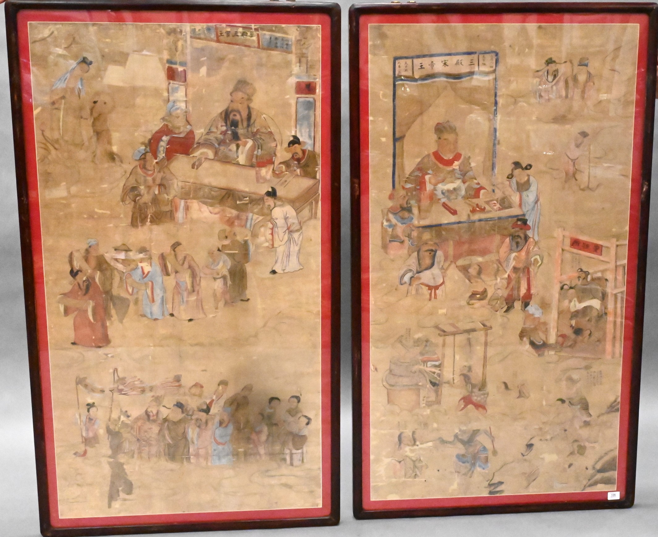 Pair of Early Chinese Diyu Scene Scrolls