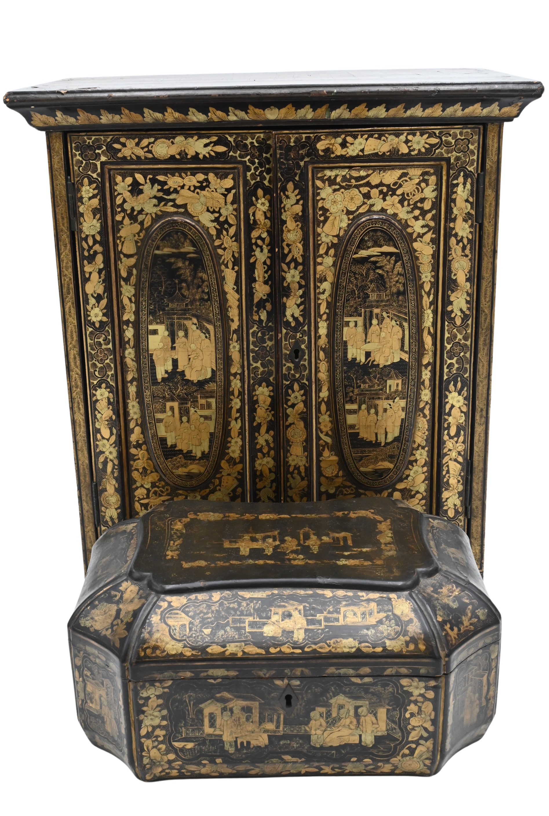 Along with a hinged lidded box with chinoiserie decoration