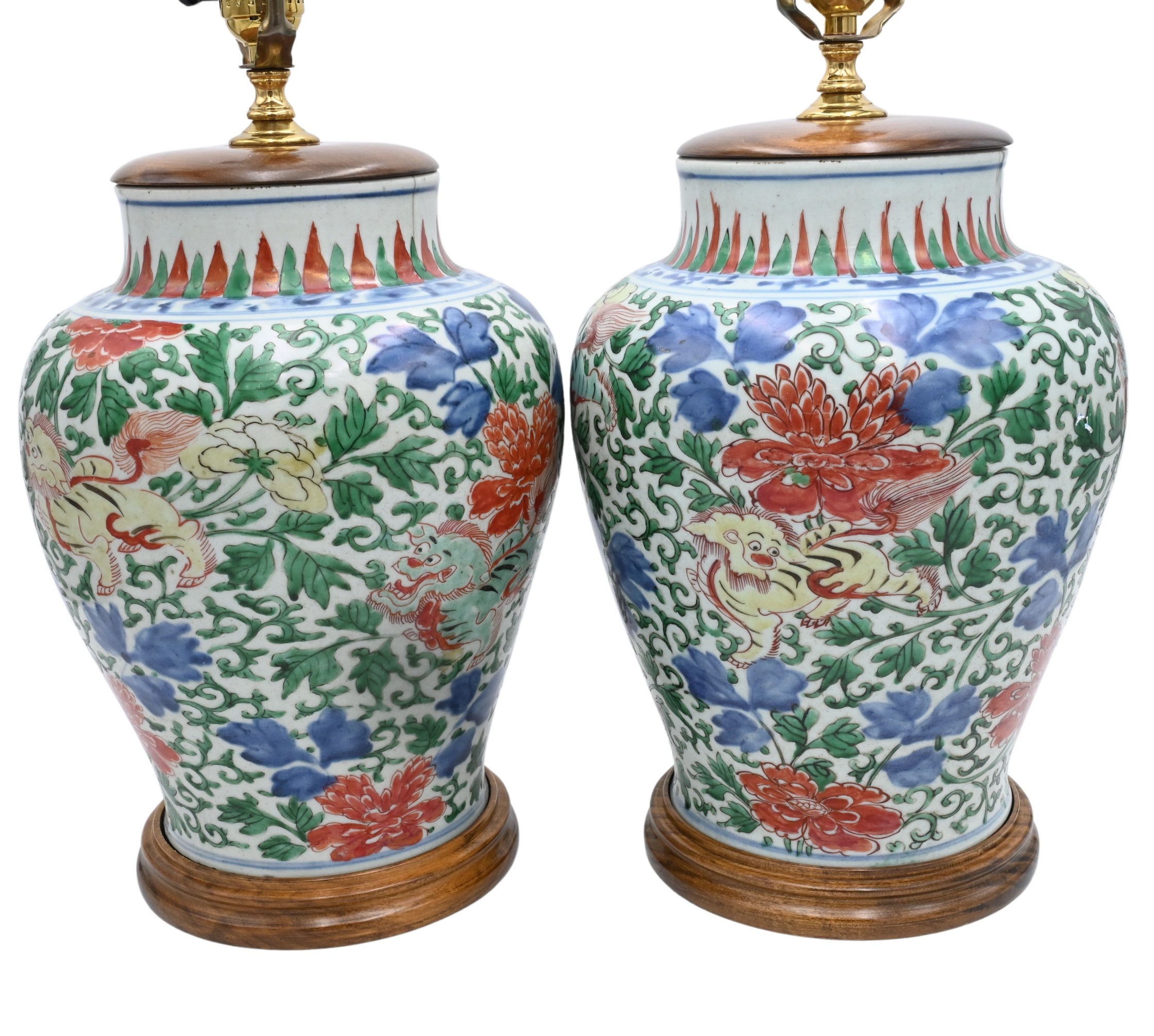 mounted on gilt foo lions signed on underside