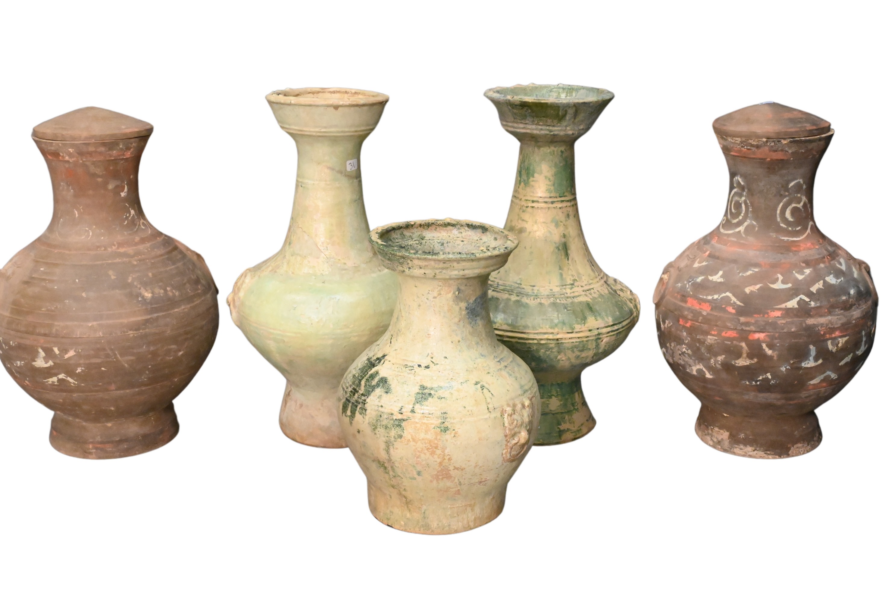 green glazed vases and a smaller green glazed vase