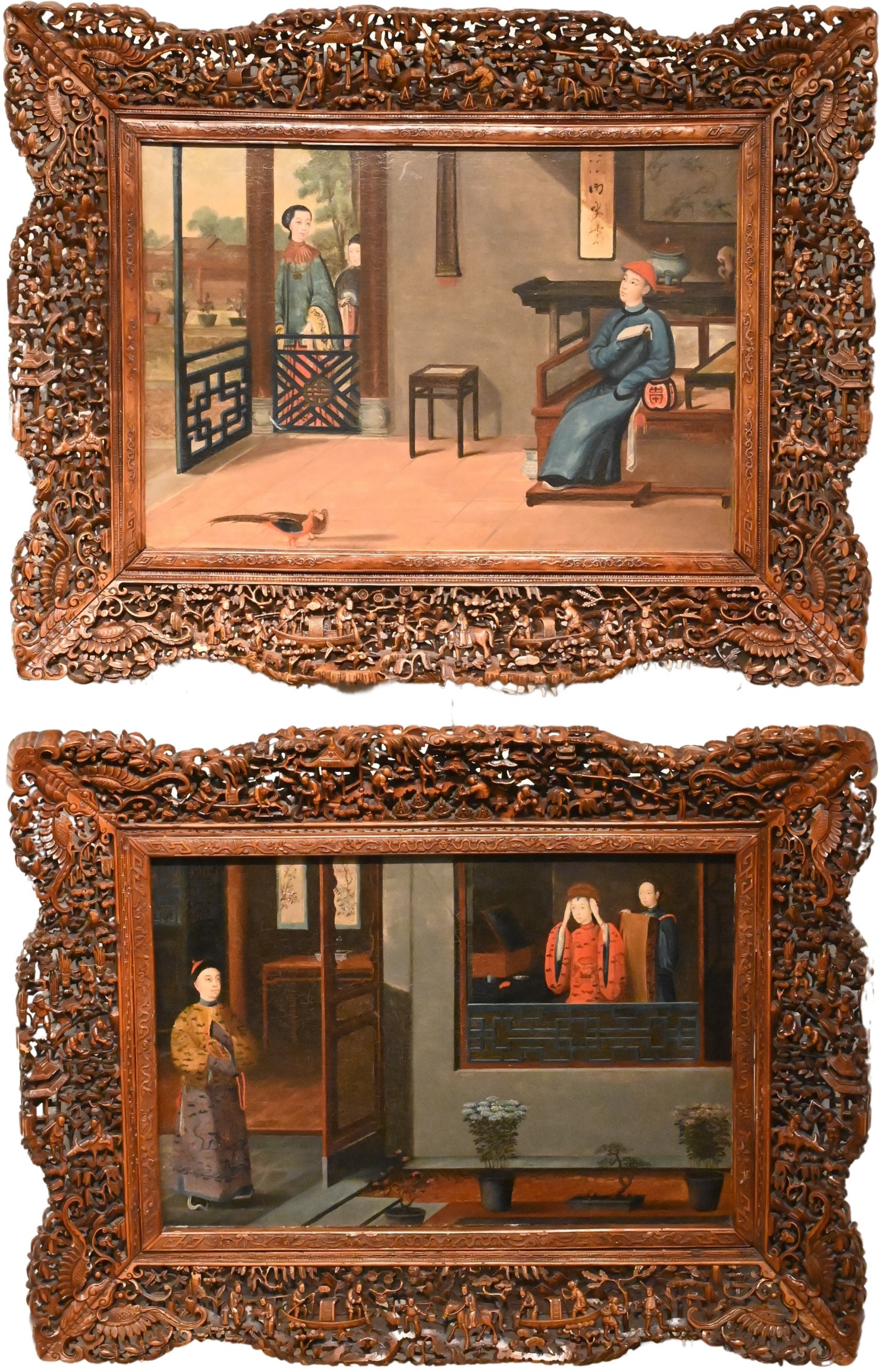 Pair of Chinese 18th or 19th Century Paintings, Interior Scenes