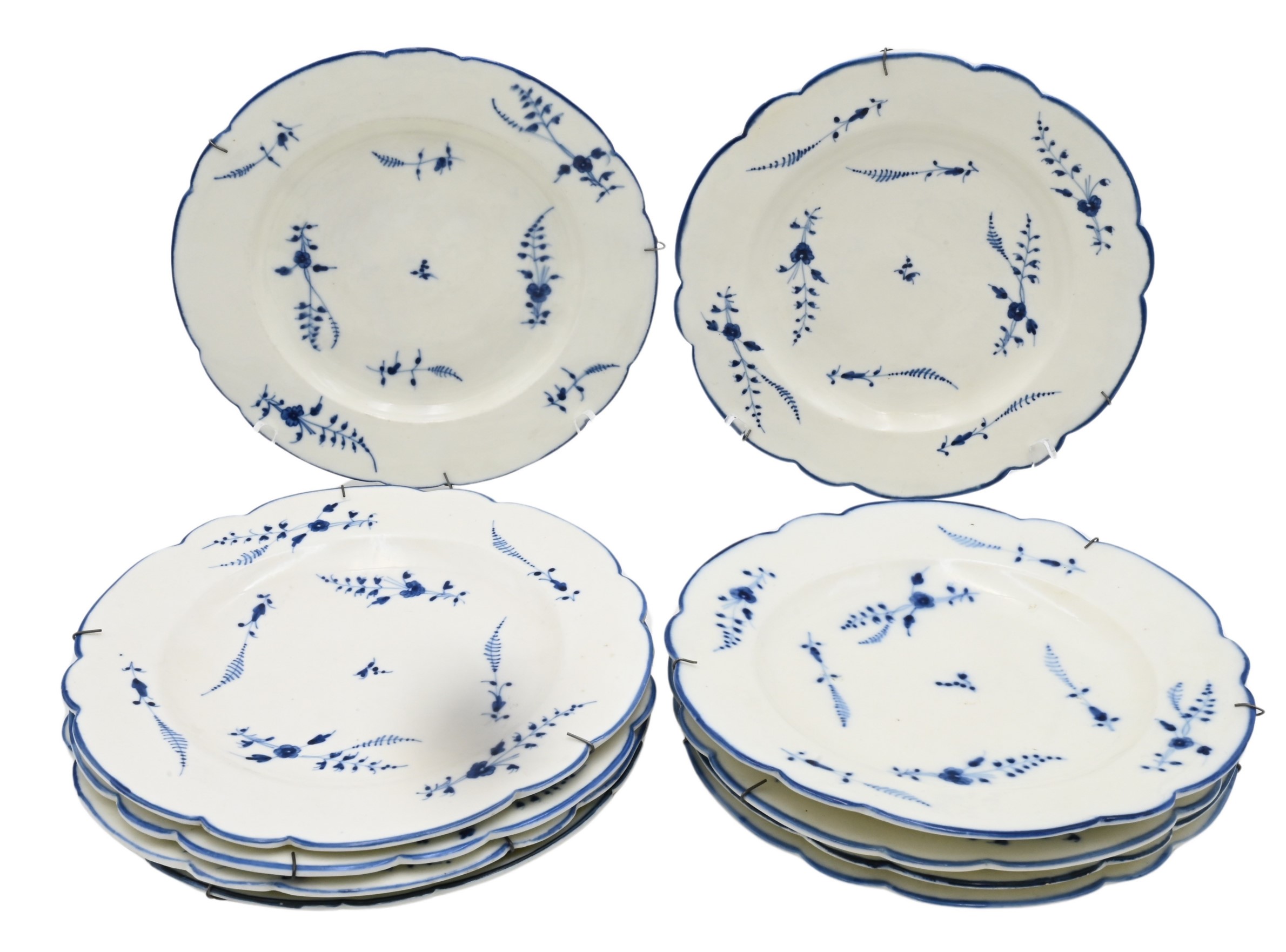 Set of Ten French 18th Century Chantilly Blue Dinner Plates