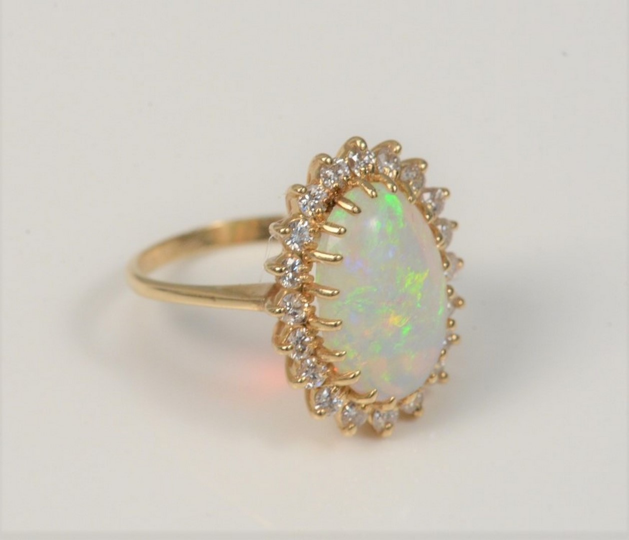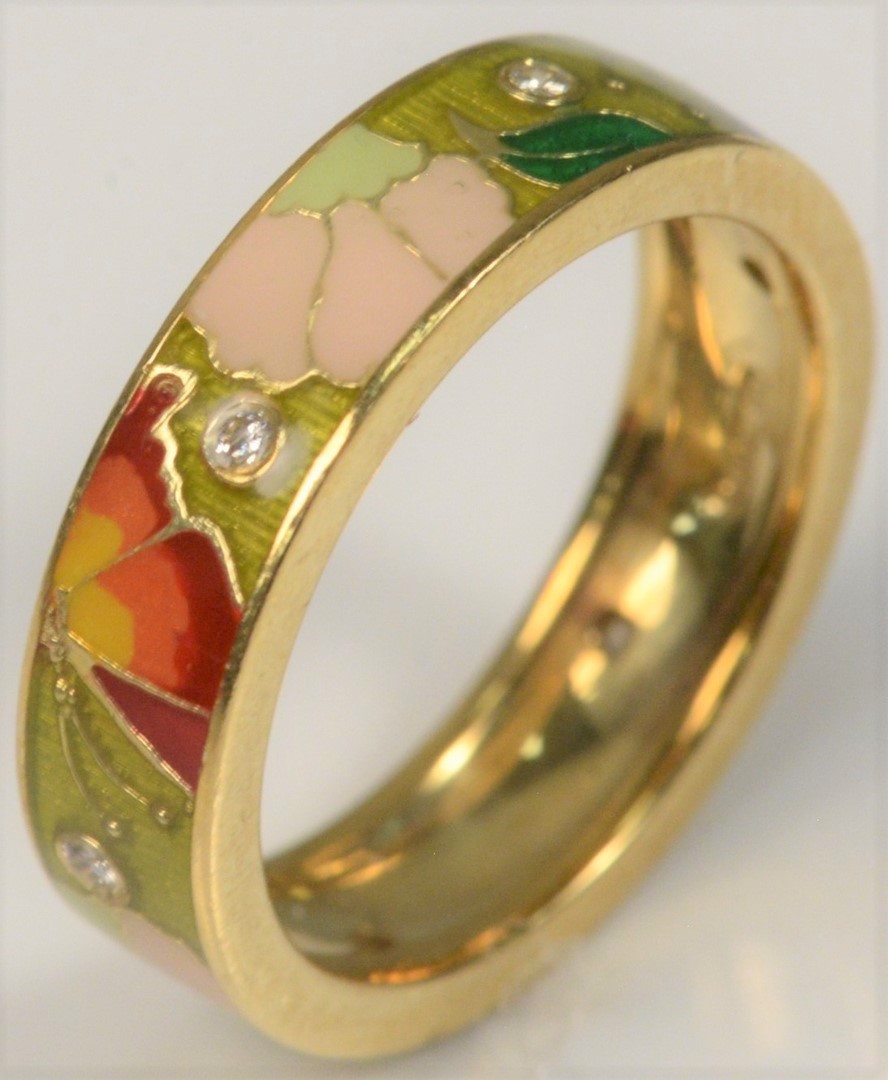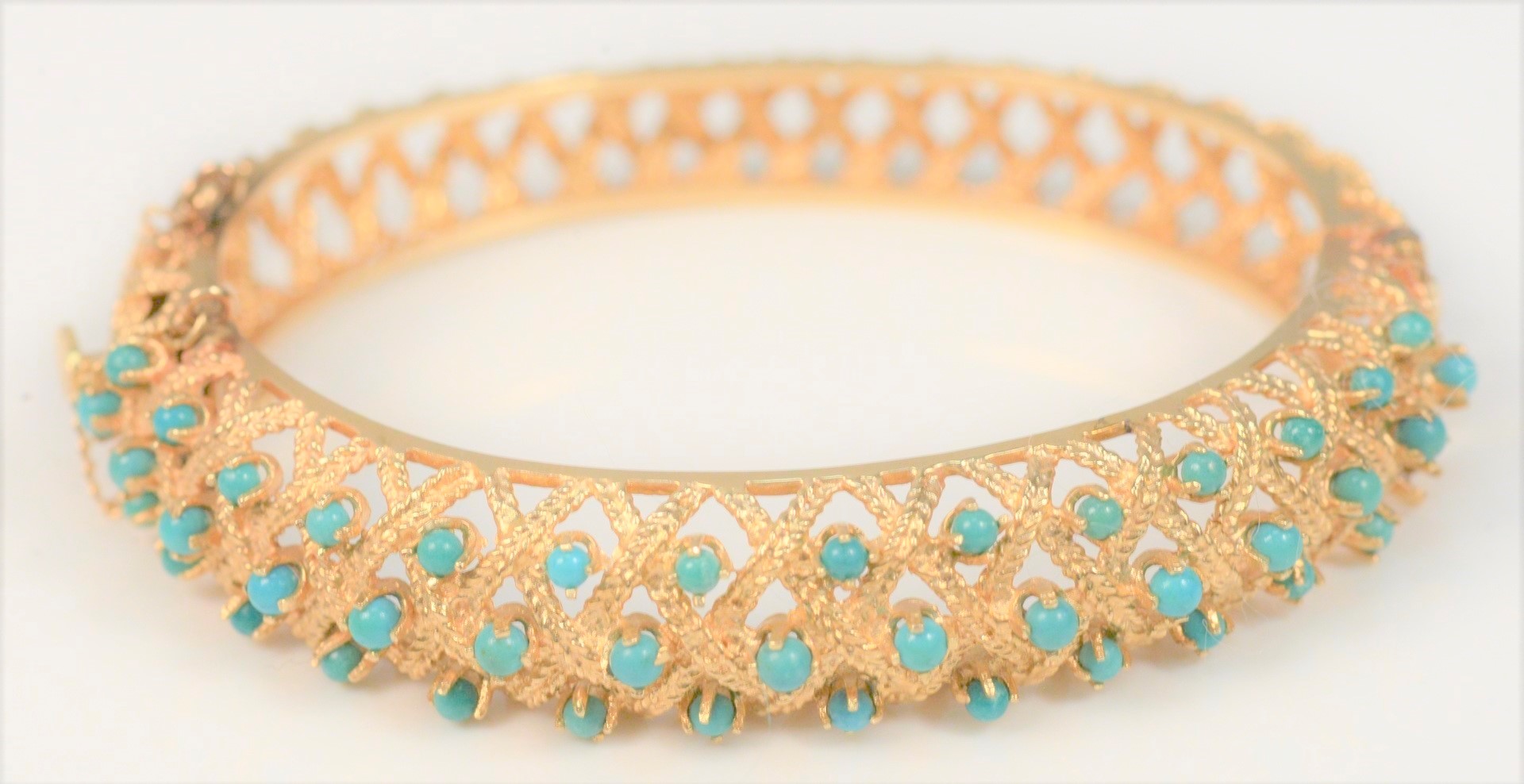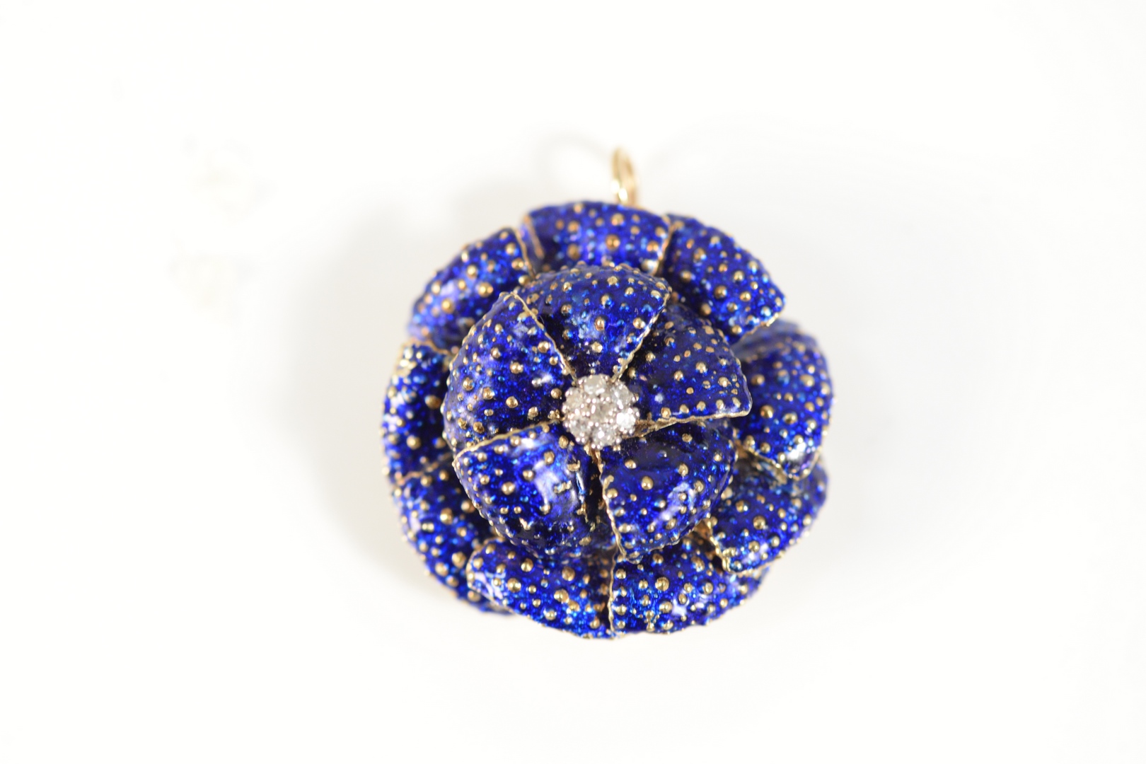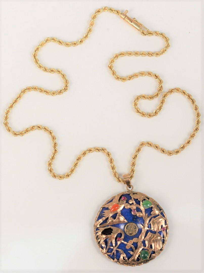 set with center of various interchangeable stones, surrounded by forty-four diamonds to include two amethyst three coral three quartz three turquoise and three lapis
