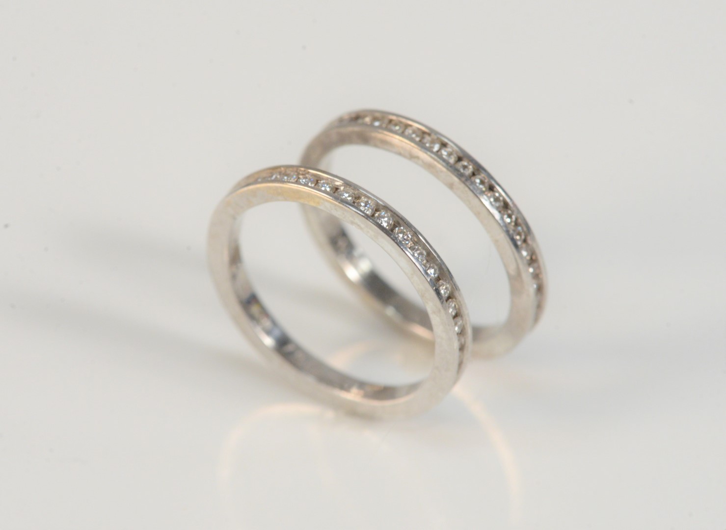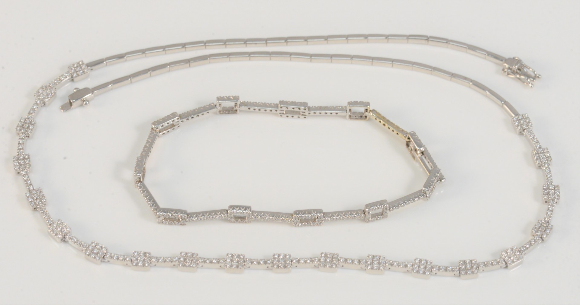 set with diamonds in squares, along with close matching 18 karat white gold and diamond bracelet